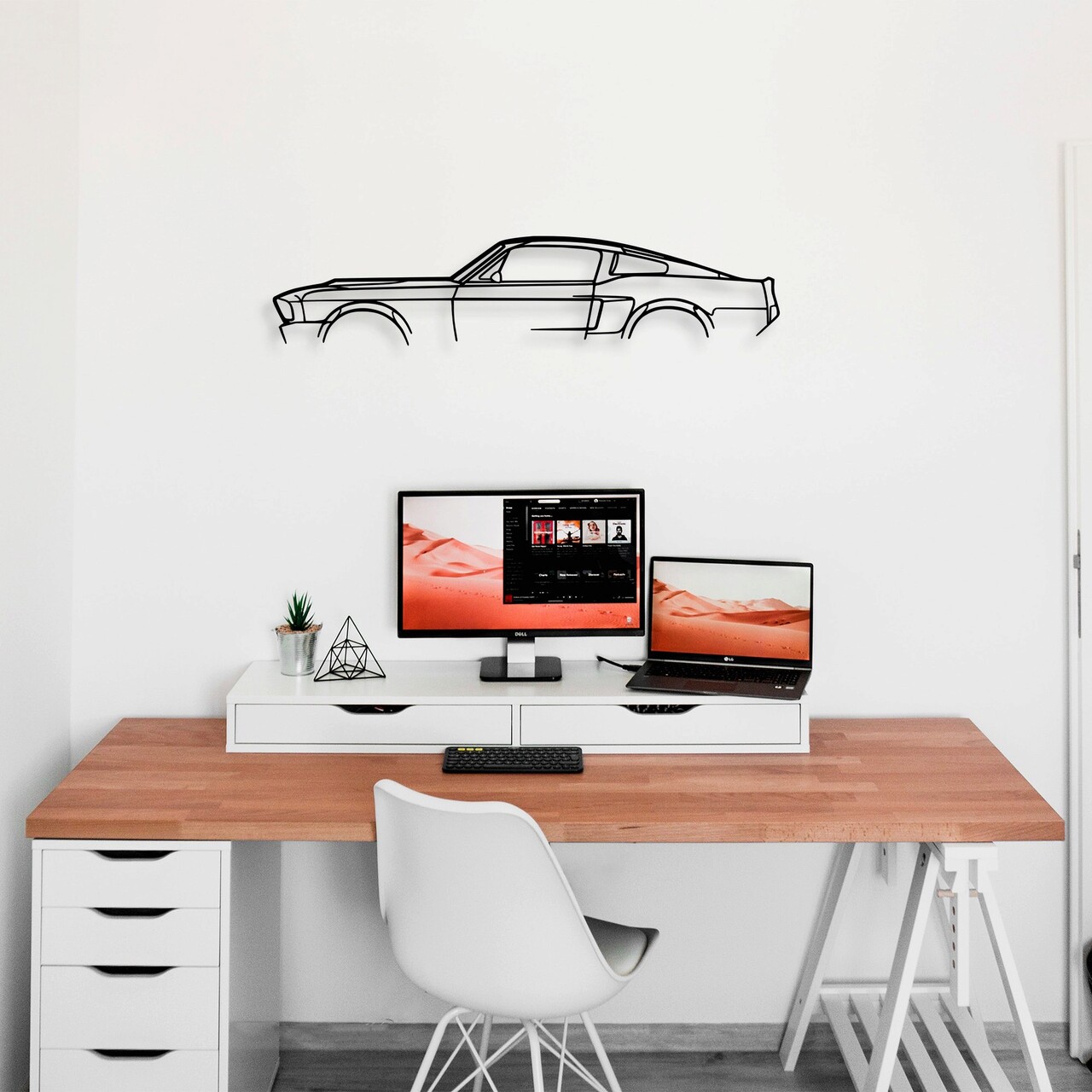 Decoratiune de perete, 1967 Ford Mustang Shelby GT500 Silhouette, Metal, 70 x 15 cm, Negru