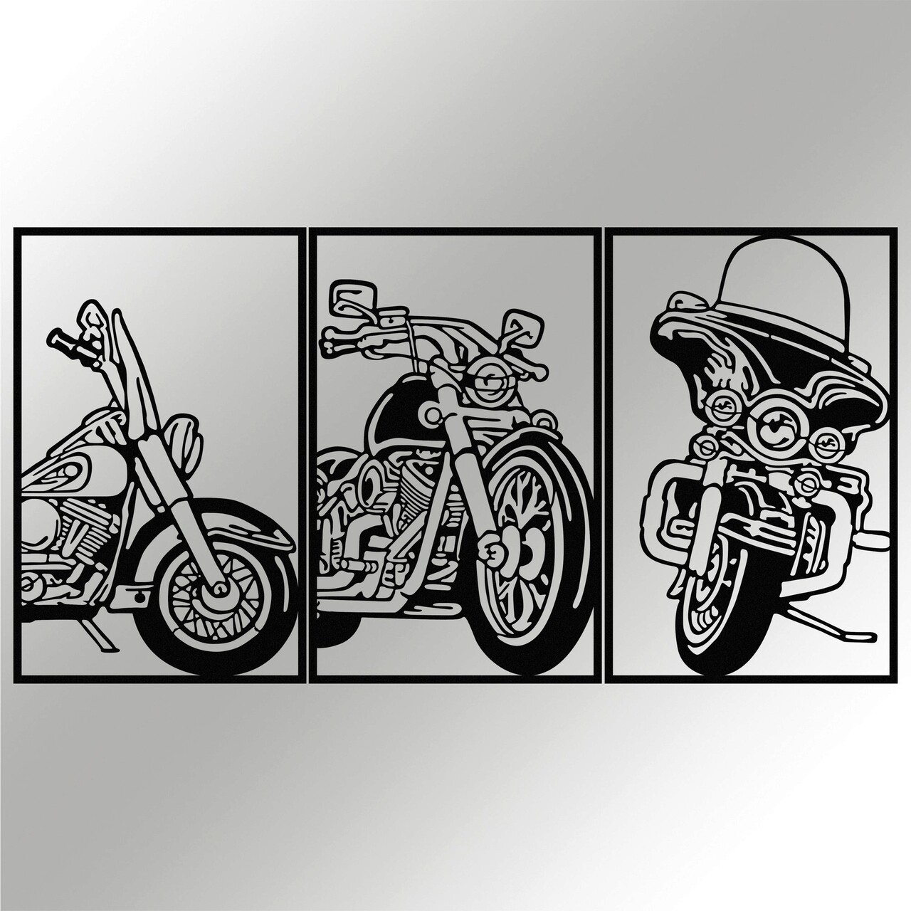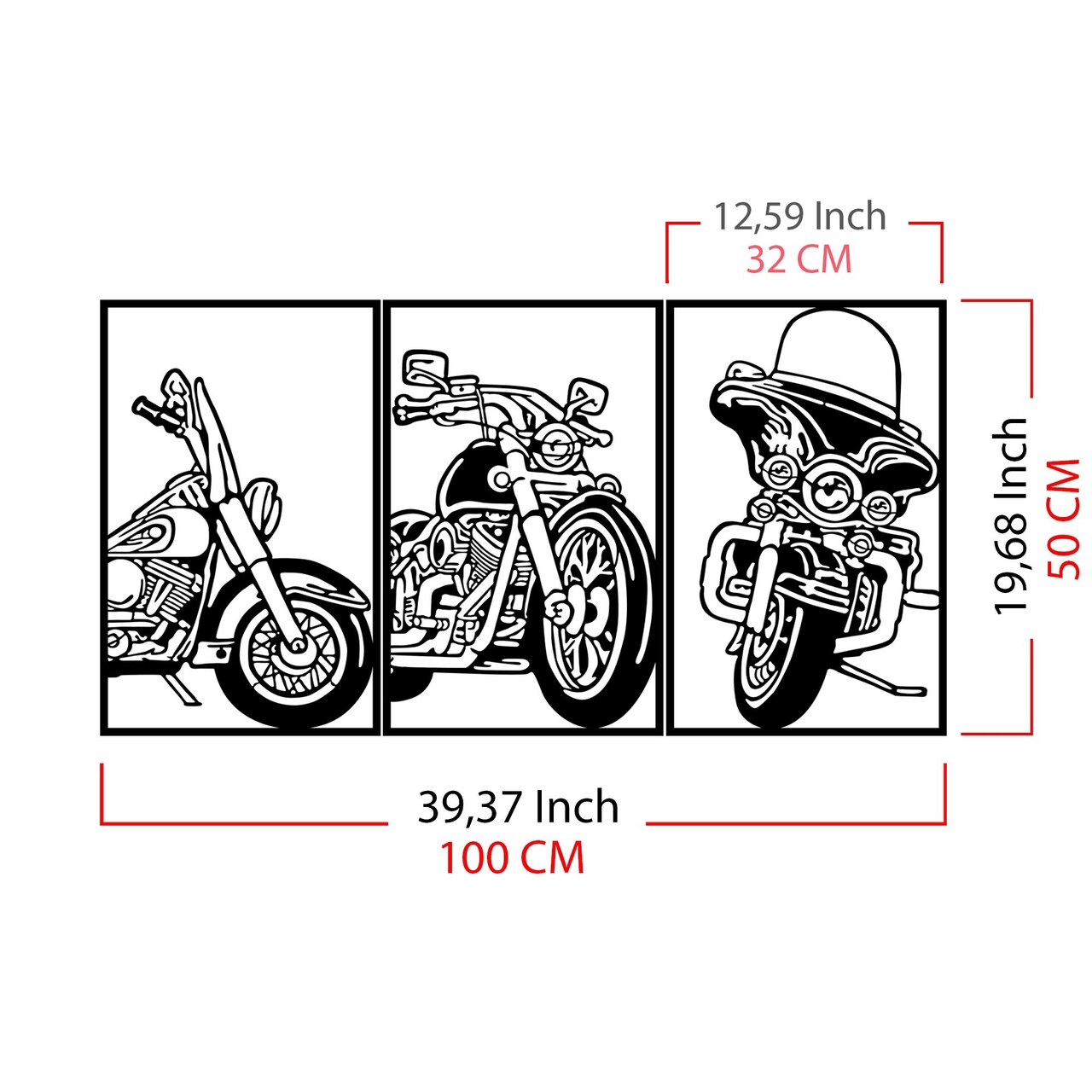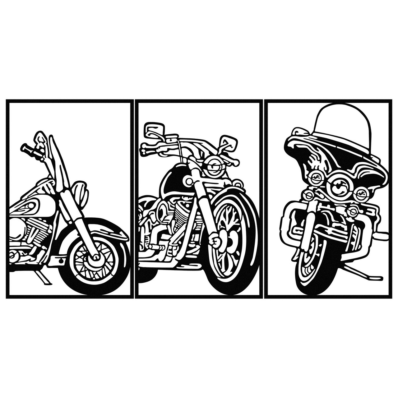Decoratiune de perete, 3 Choppers, metal, 100 x 50 cm, negru