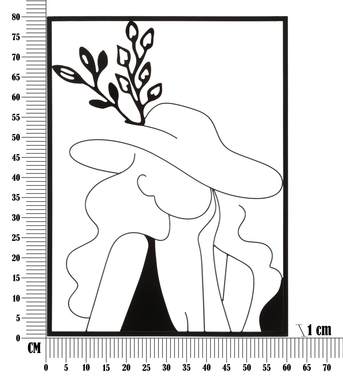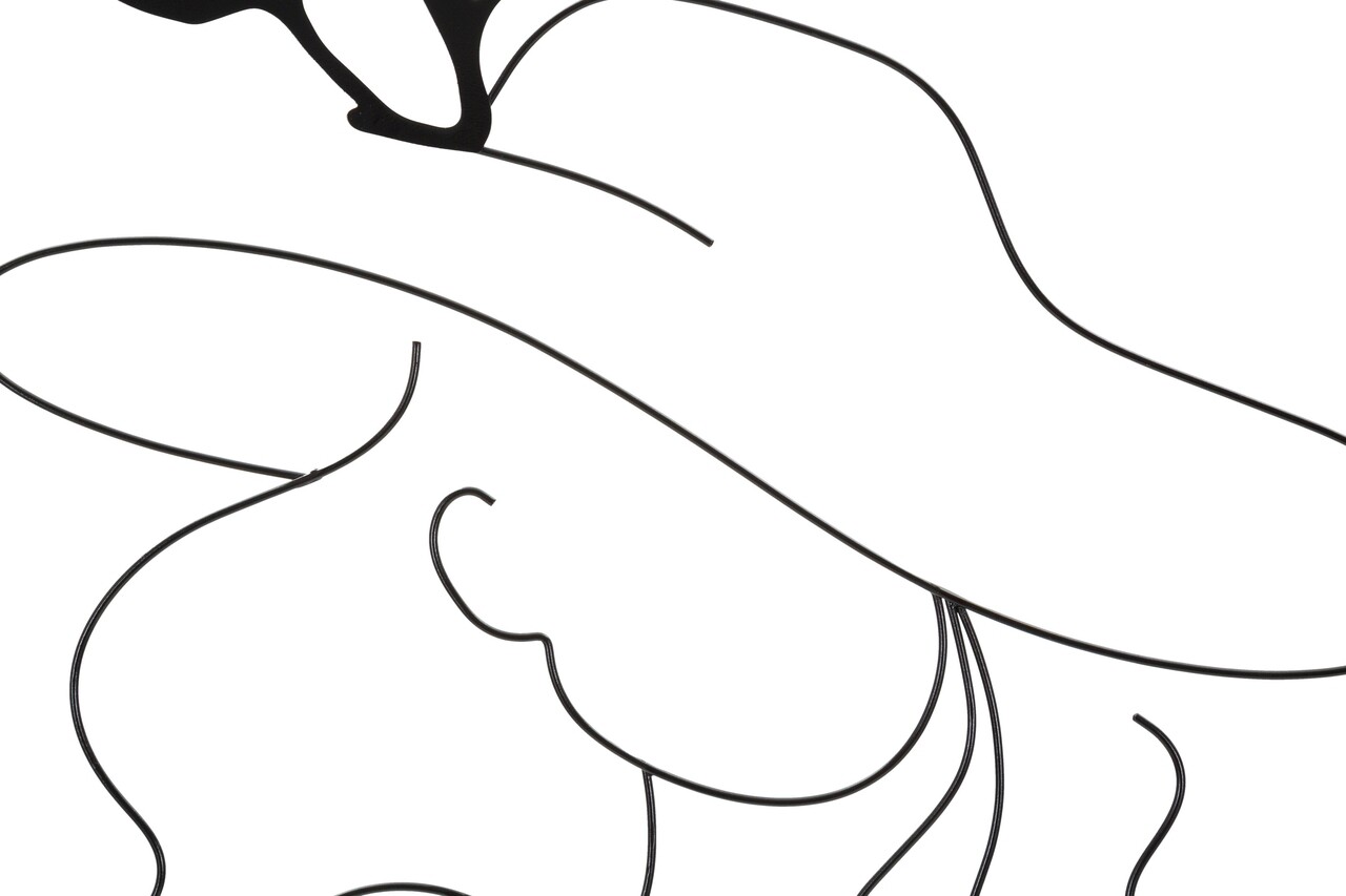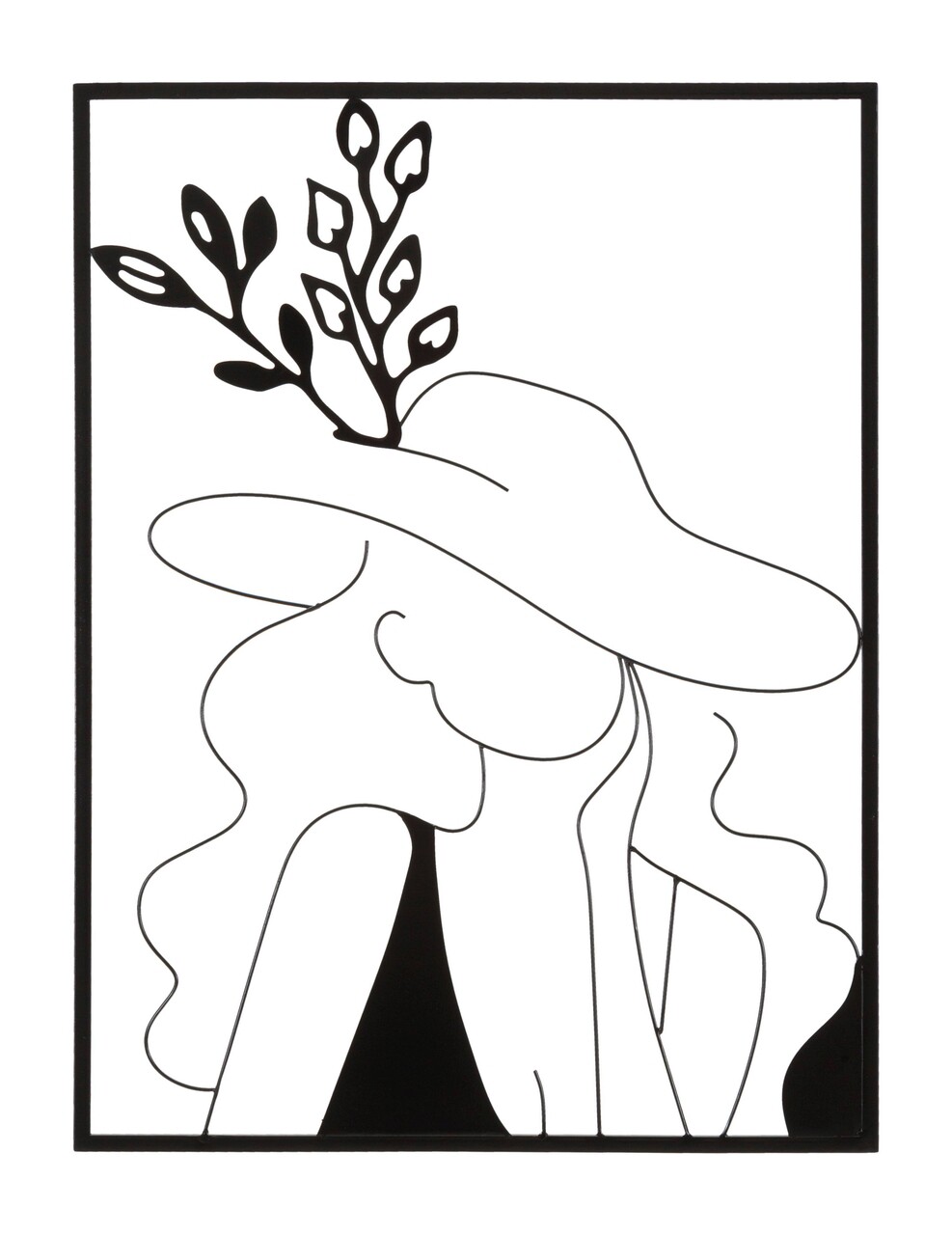 Panou decorativ de perete 3D cu linii simple, care compun o figura feminina cu o palarie eleganta, toate incadrate intr-un cadru dreptunghiular.