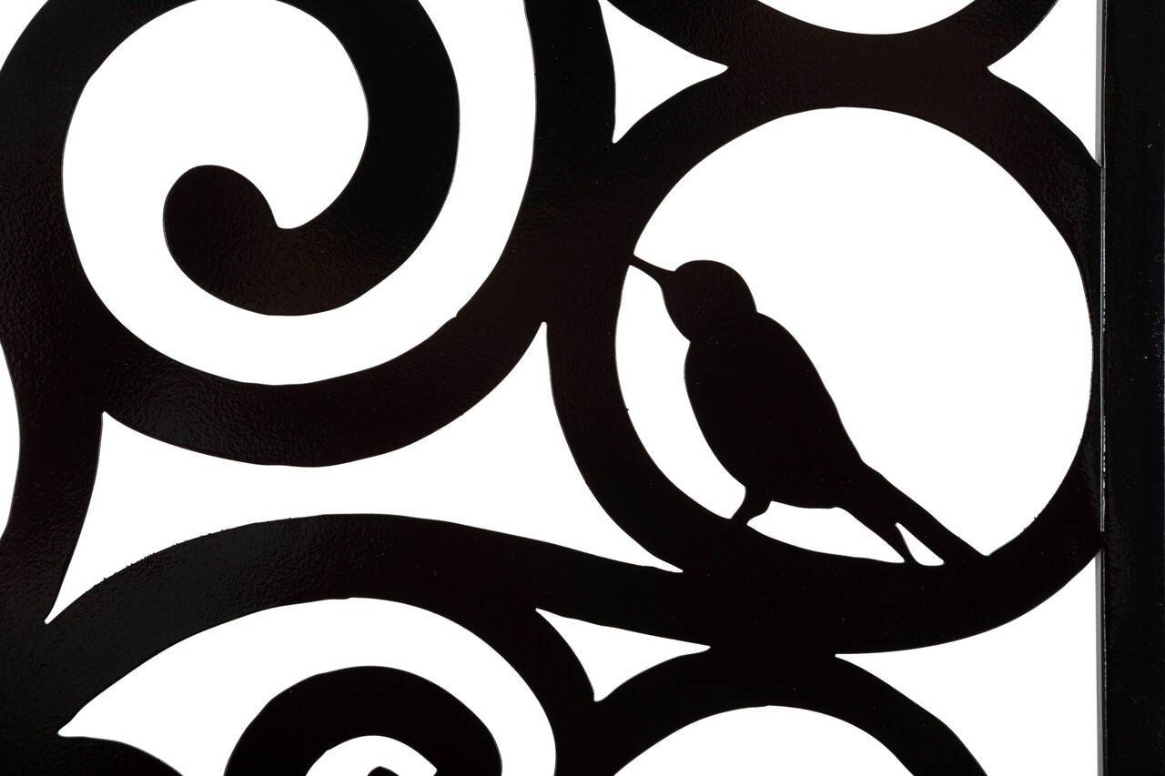 Panou decorativ de perete 3D care reprezinta un copac cu pasari cu linii delicate si rotunjite. Intregul ansamblu este incadrat intr-o rama patrata.