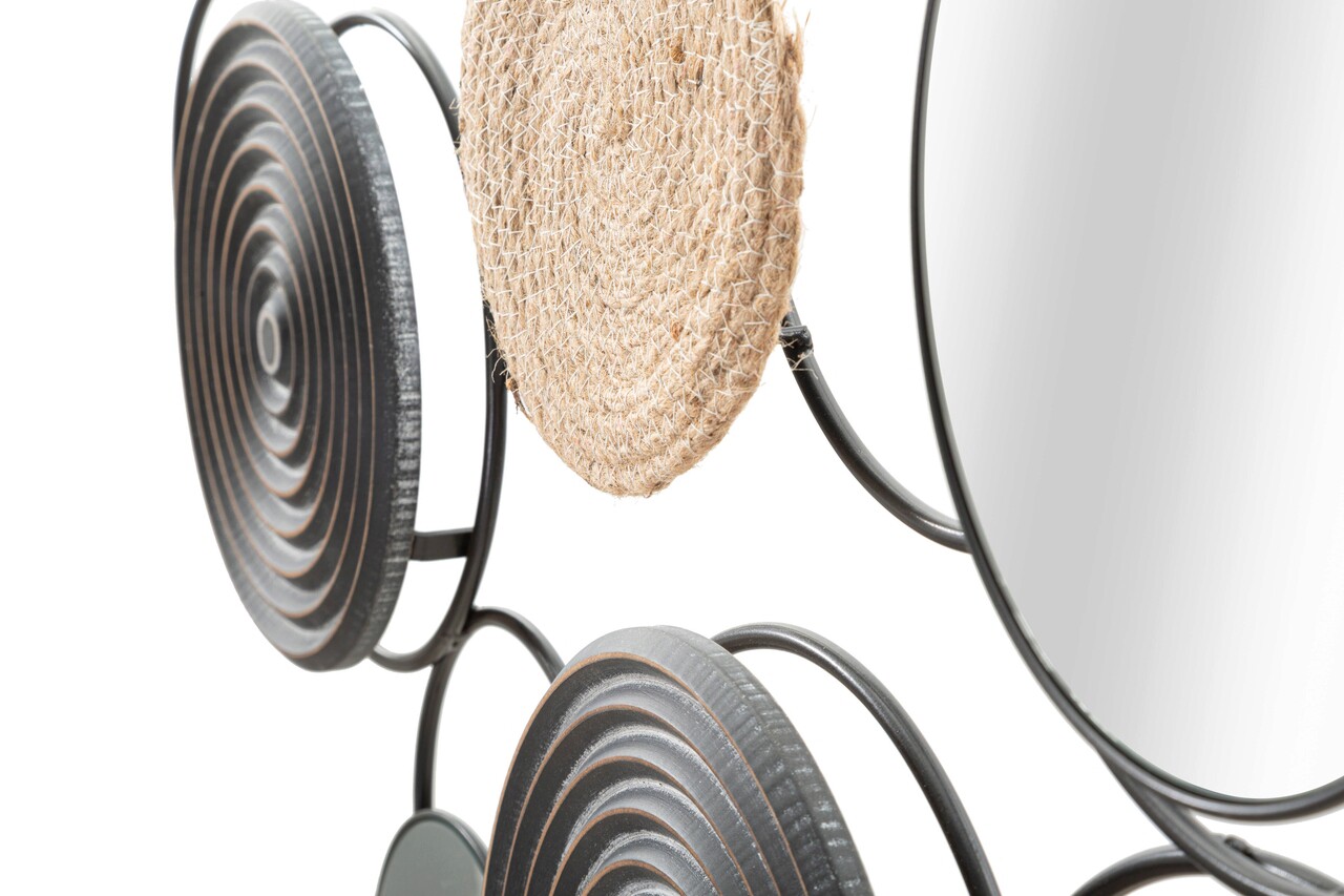 Panoul decorativ de perete 3D format dintr-un set de cercuri de diferite dimensiuni si din diferite materiale. Compozitia in ansamblul ei da o nota etnica oricarui ambient.