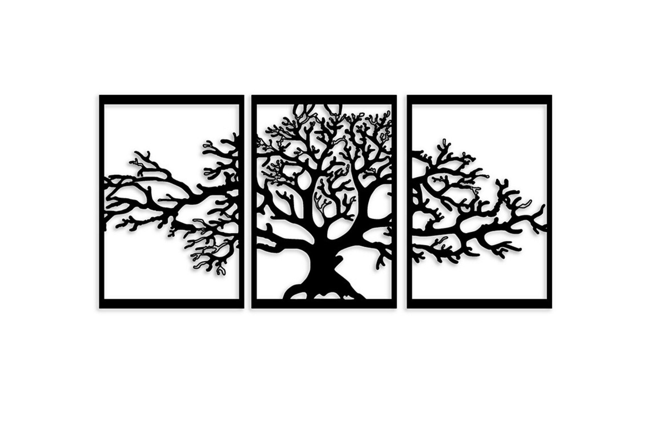 Decoratiune de perete, Ağaç 3 Parçalı, Metal, 35 x 50 cm, 3 piese, Negru