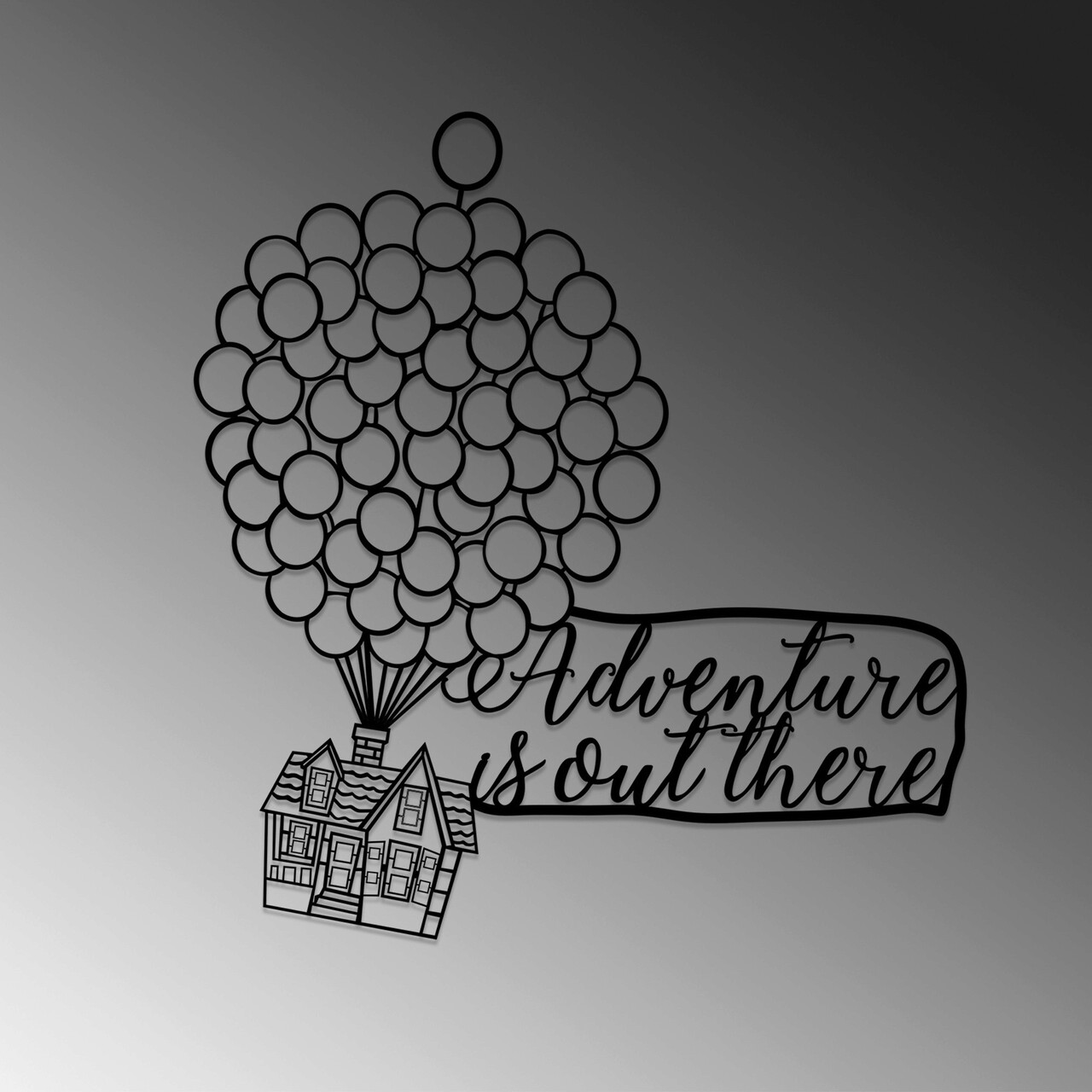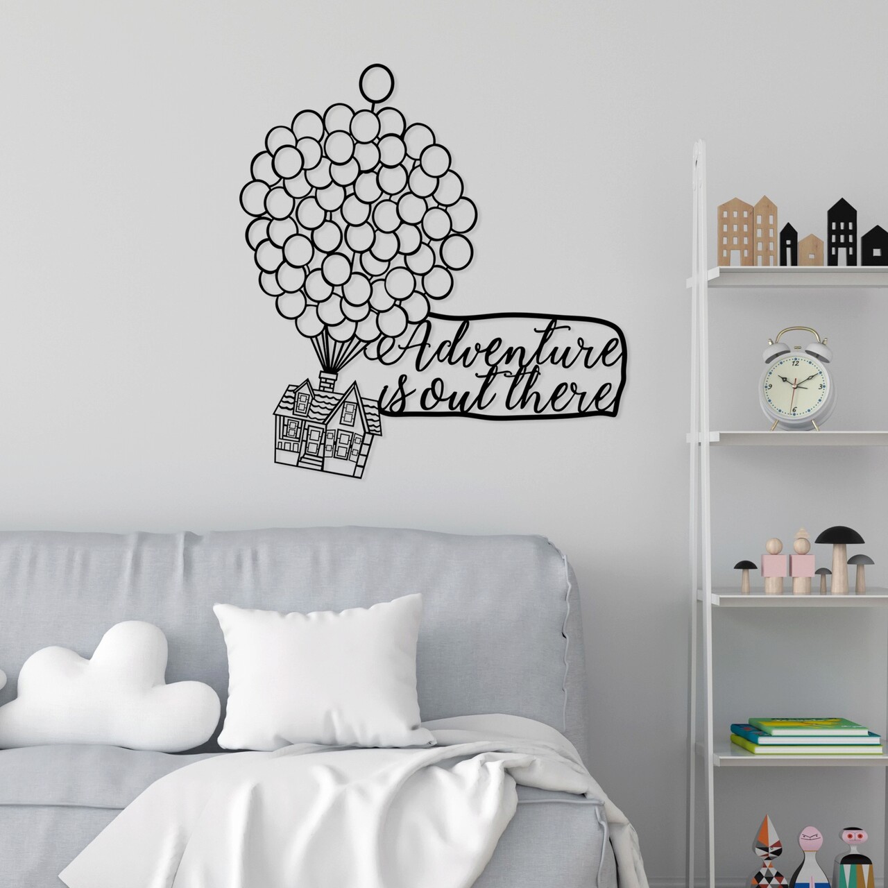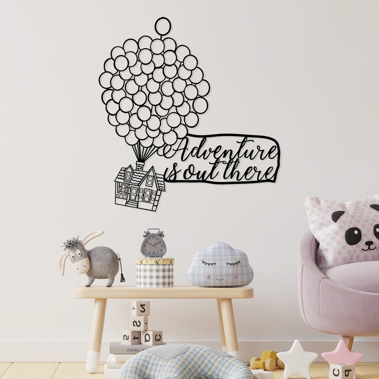 Decoratiune de perete, Adventure Is Out There, Metal, Dimensiune: 65 x 70 cm, Negru