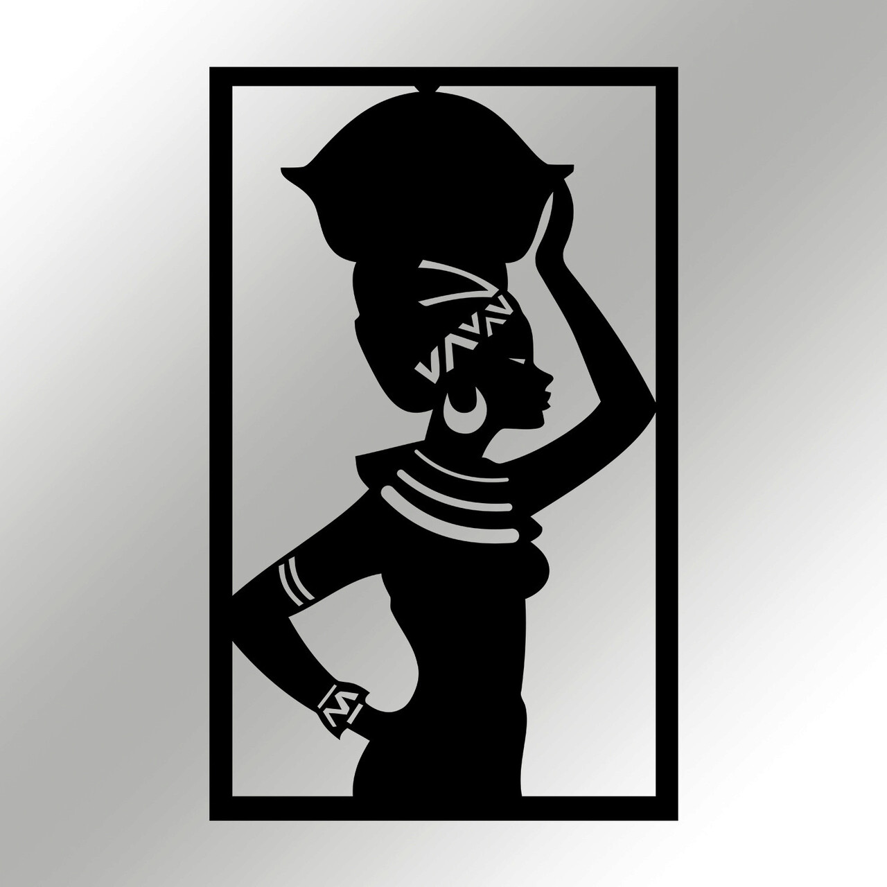 Decoratiune de perete, African, metal, 35 x 56 cm, negru