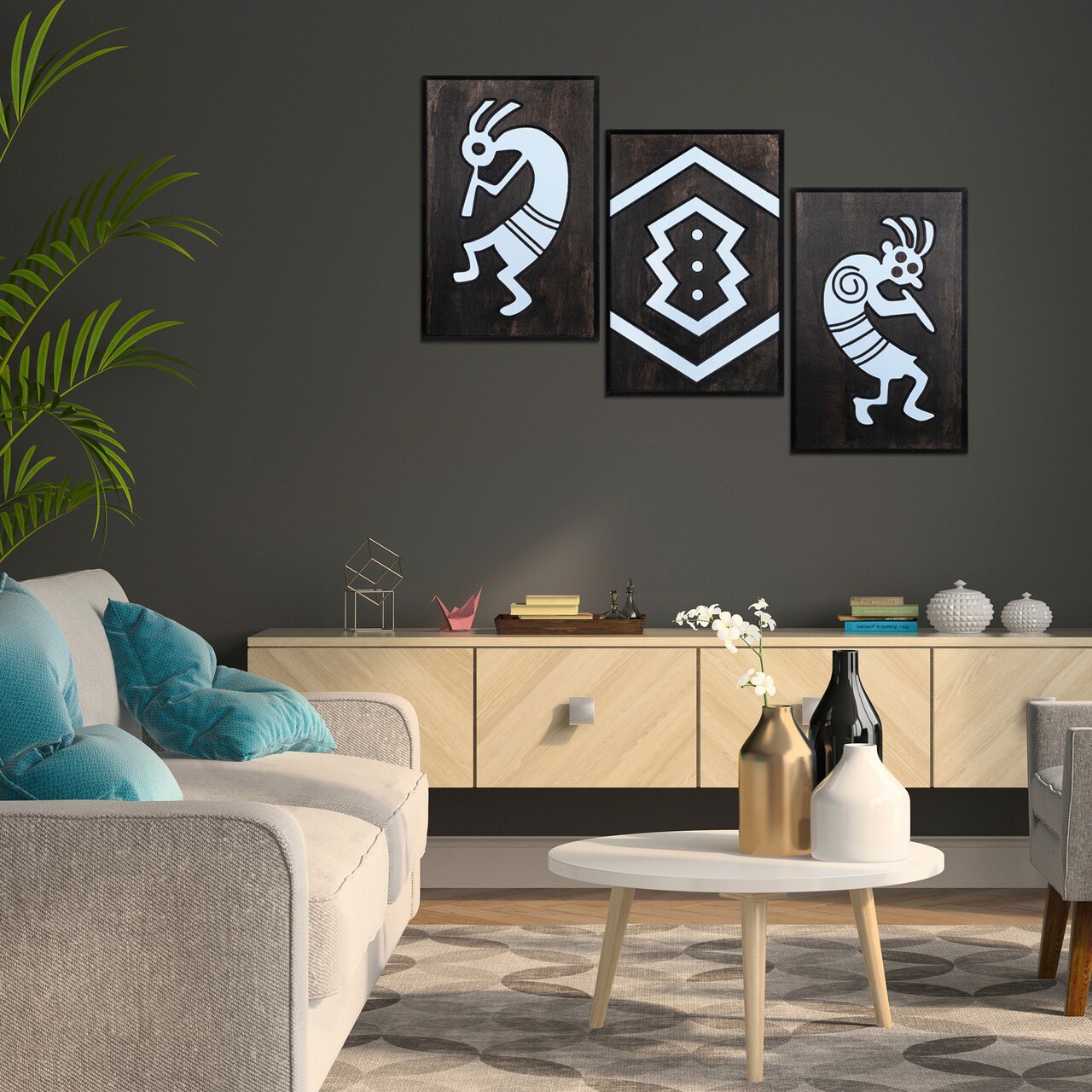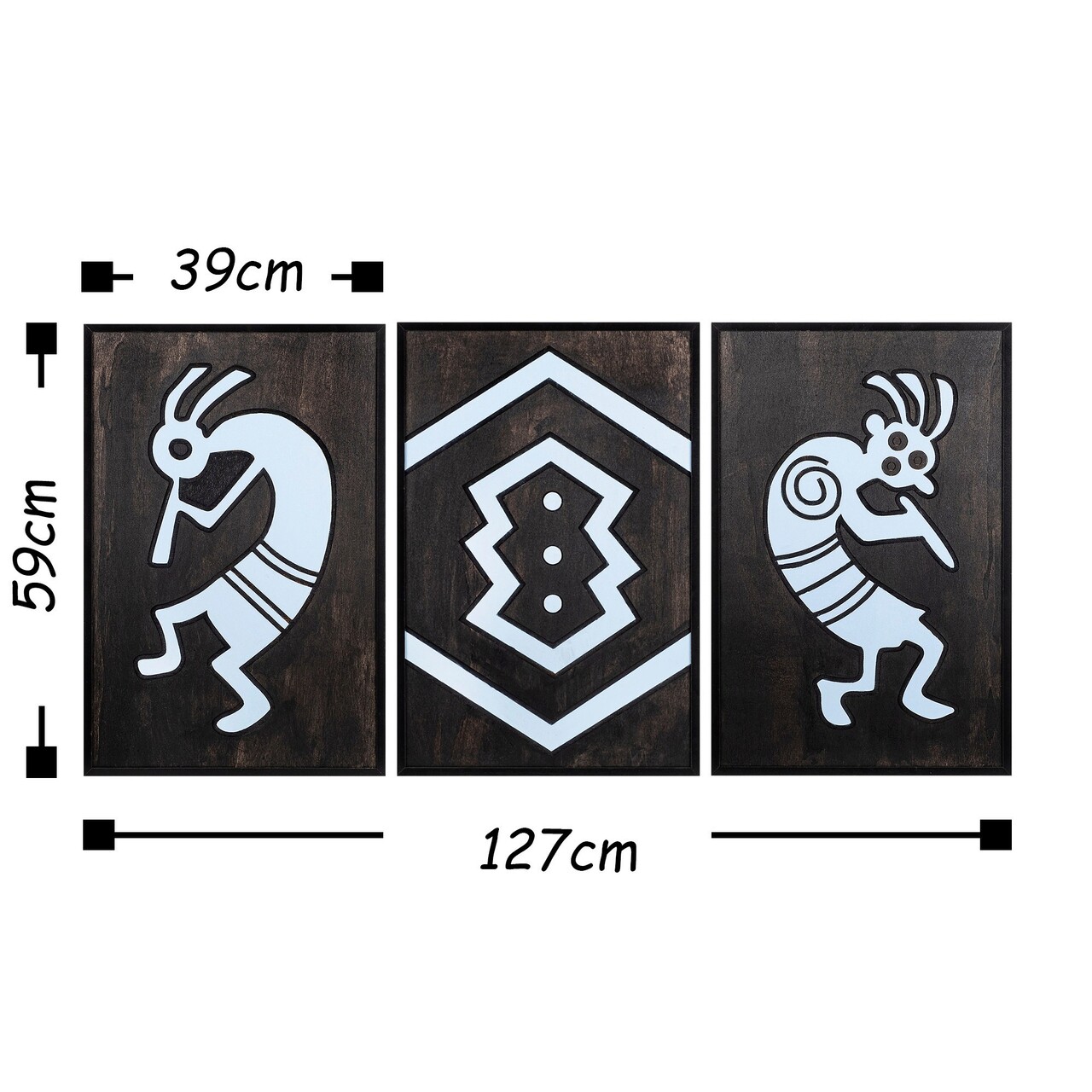 Decoratiune de perete, African Music 1, Placaj, 39 x 59 cm, 3 piese, Multicolor