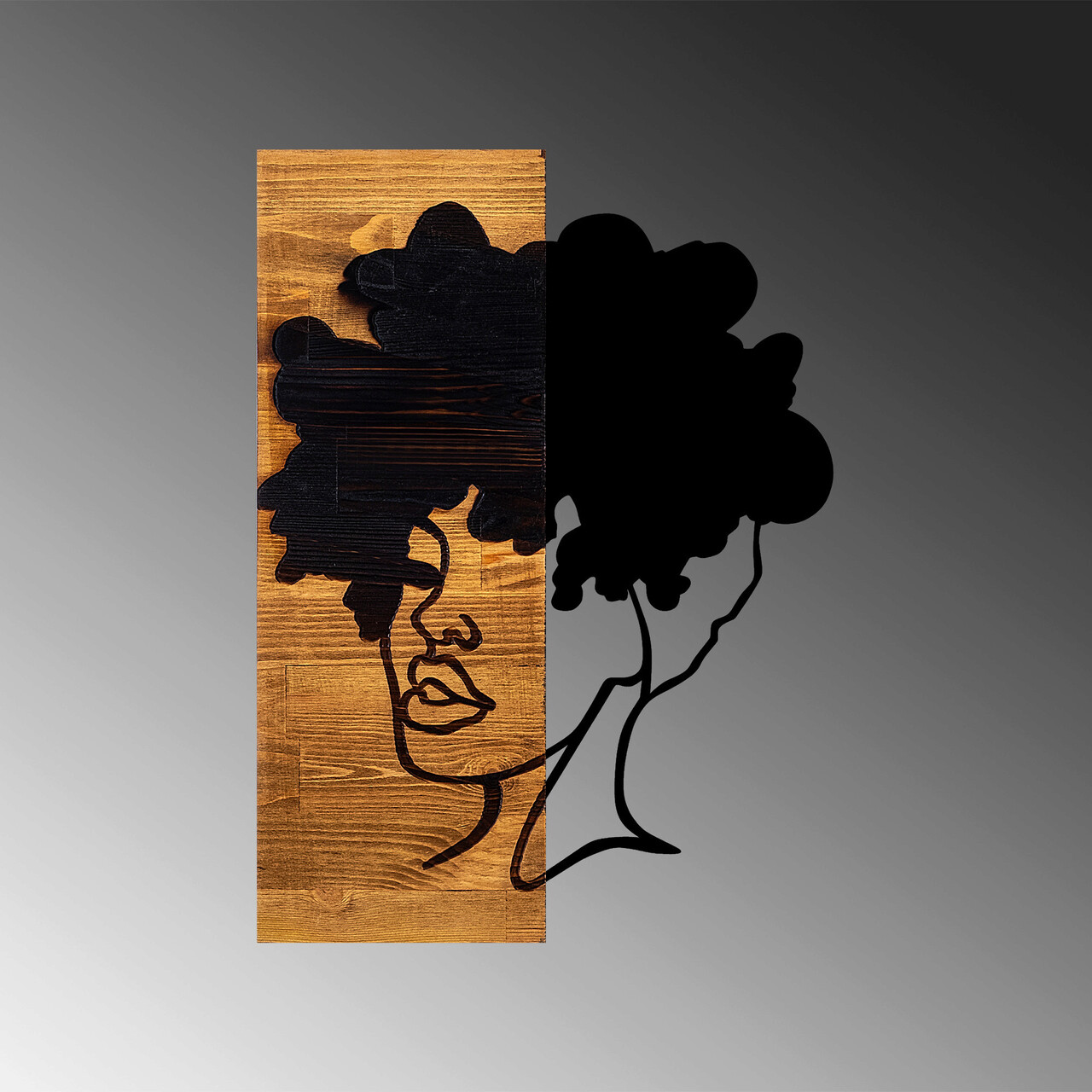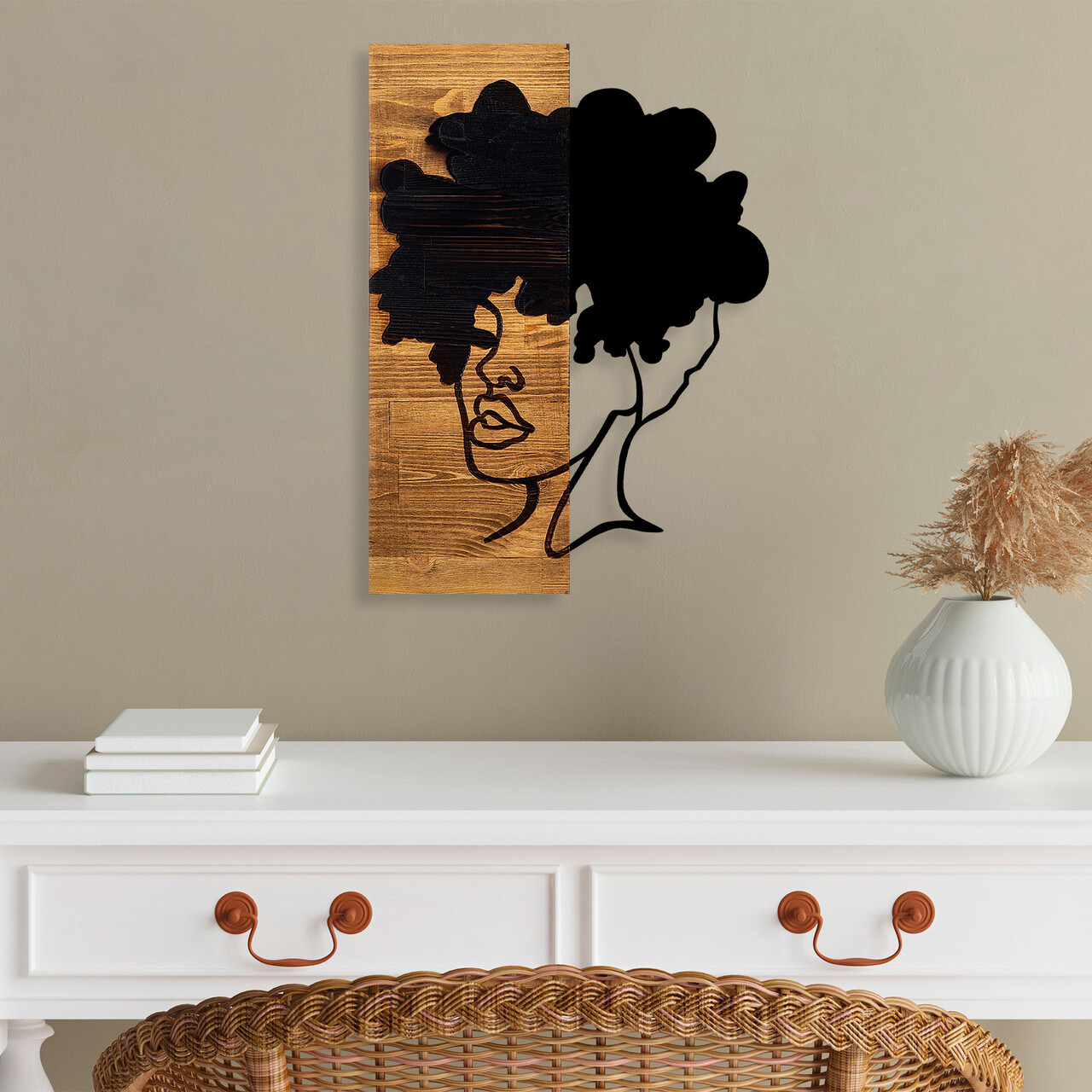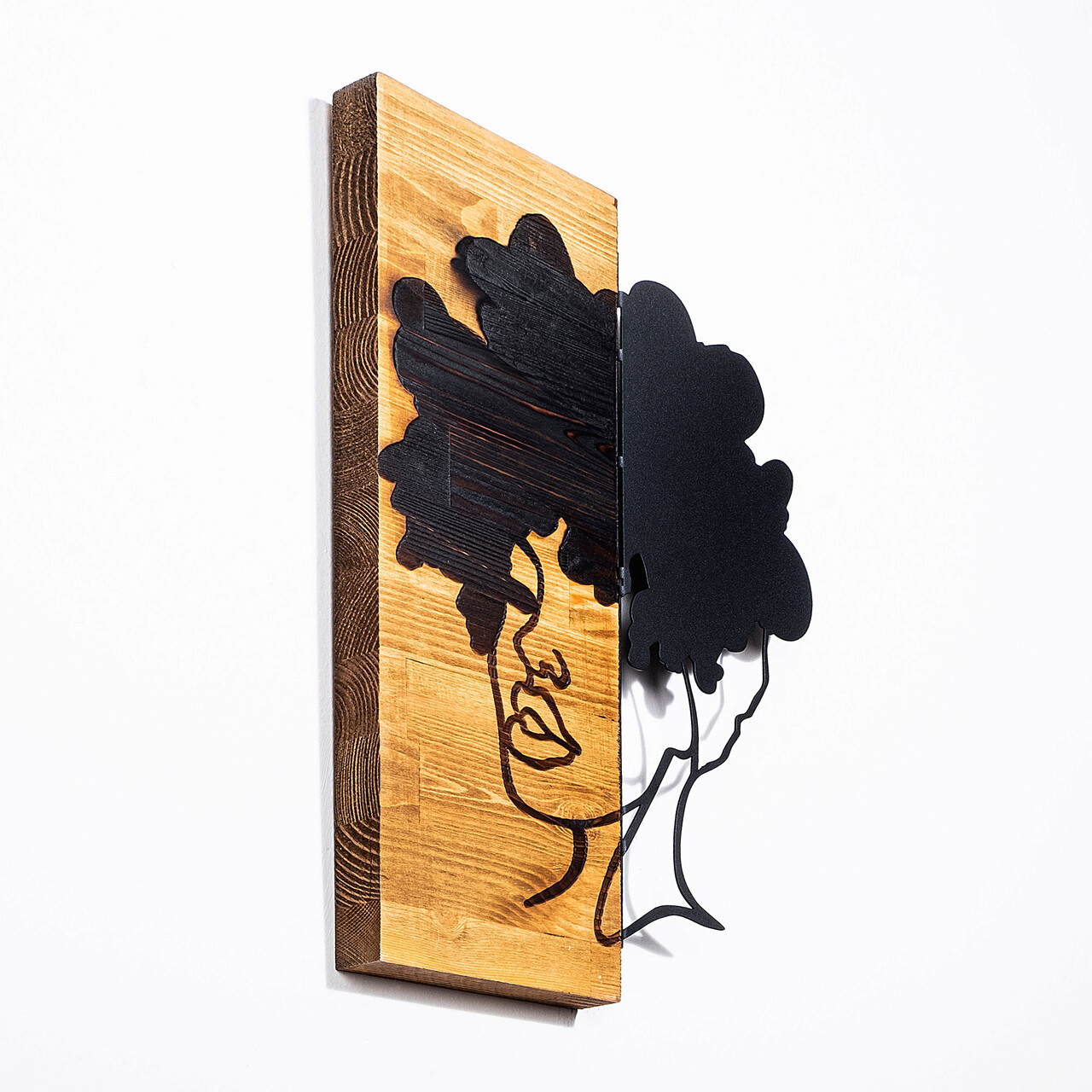 Decoratiune de perete, African Woman, 50% lemn/50% metal, Dimensiune: 35 x 3 x 50 cm, Negru / Nuc deschis