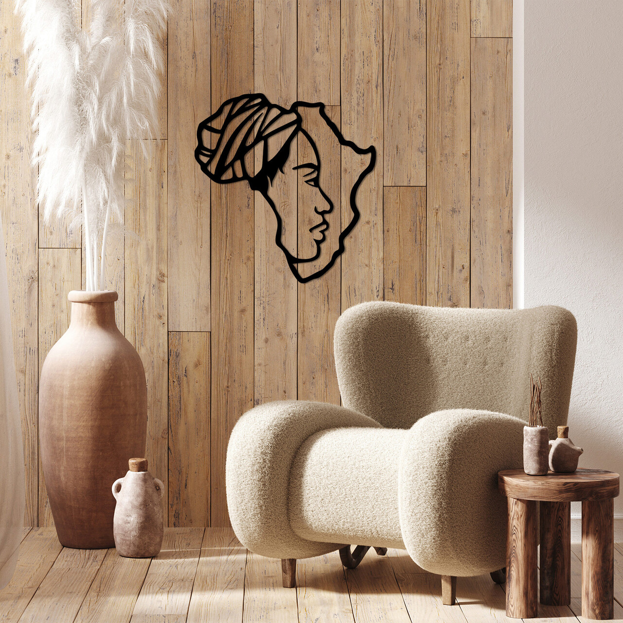 Decoratiune de perete, African Woman, Dimensiune: 67 x 70 cm, Negru