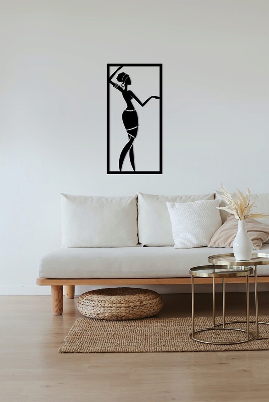 Decoratiune de perete, Afrikalı Kızlar_1, Metal, Dimensiune: 35 x 70 cm, Negru