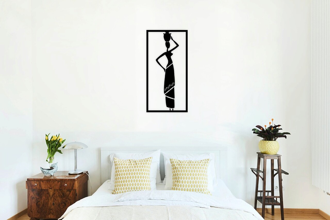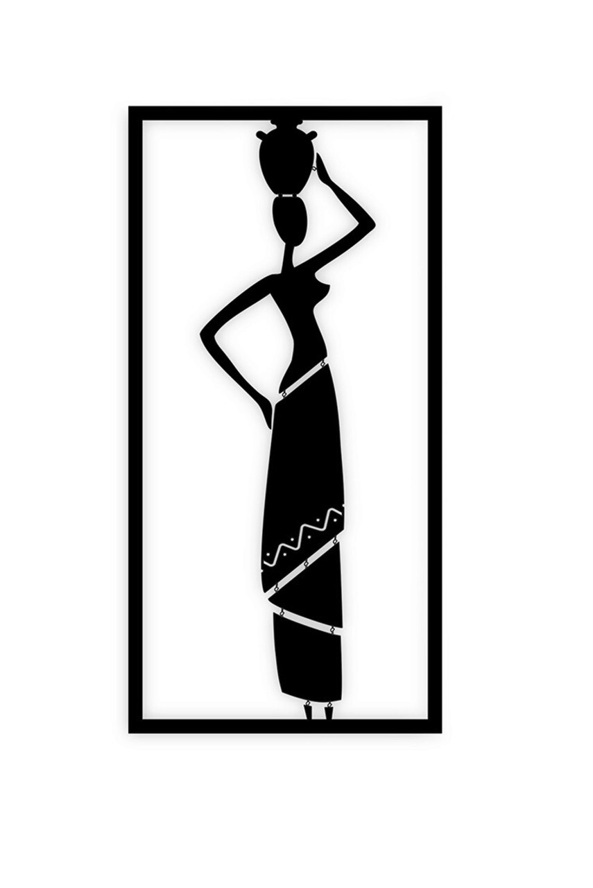 Decoratiune de perete, Afrikalı Kızlar_2, Metal, Dimensiune: 35 x 70 cm, Negru