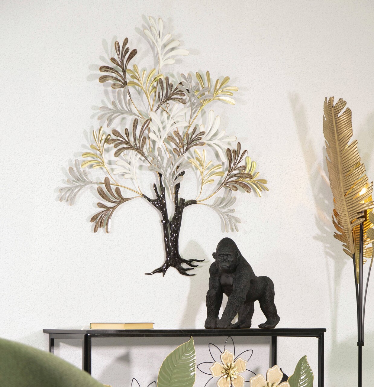 Panou decorativ de perete 3D din fier reprezentand un copac cu elemente simple si stilizate.