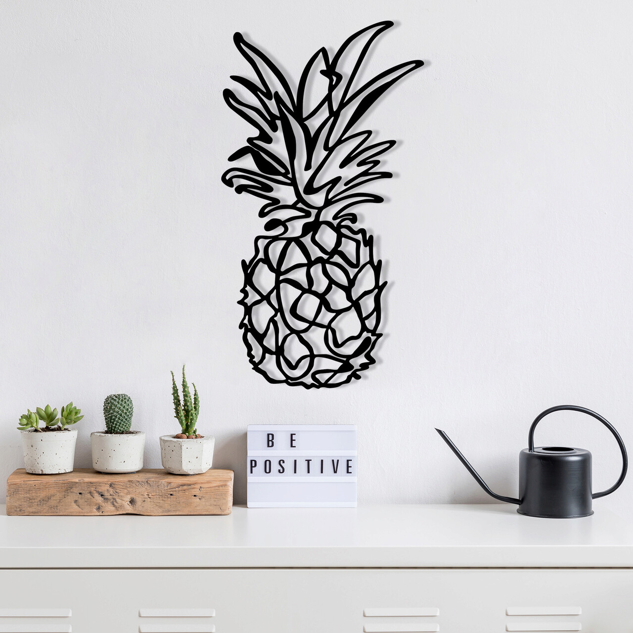 Decoratiune de perete, Ananas - M120, metal, 33 x 60 cm, negru
