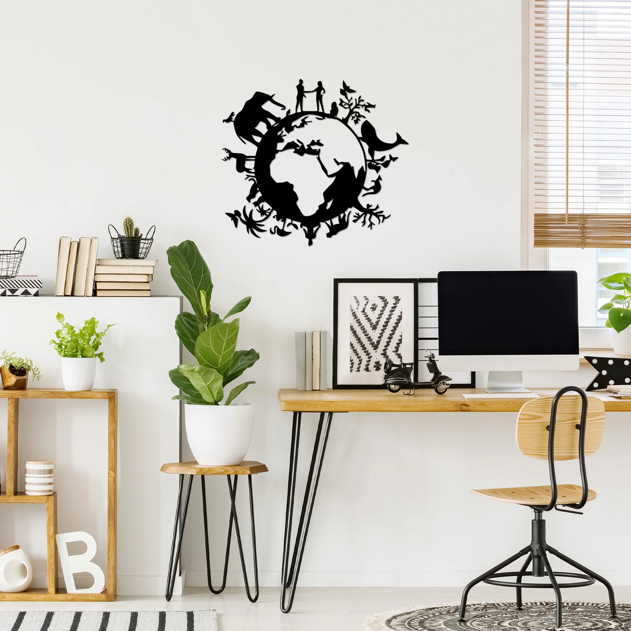 Decoratiune de perete, Animal World, Metal, Dimensiune: 70 x 62 cm, Negru