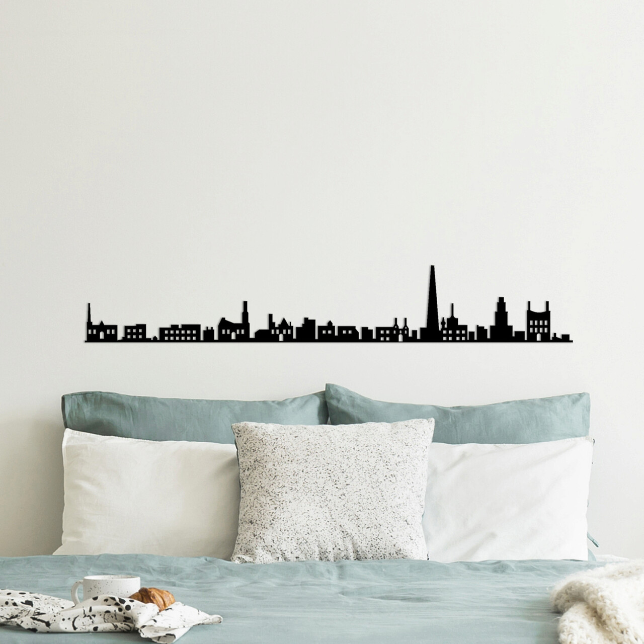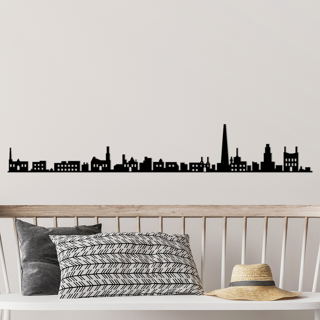 Decoratiune de perete, Antwerp Skyline, Metal, Dimensiune: 120 x 0,15 x 19 cm, Negru