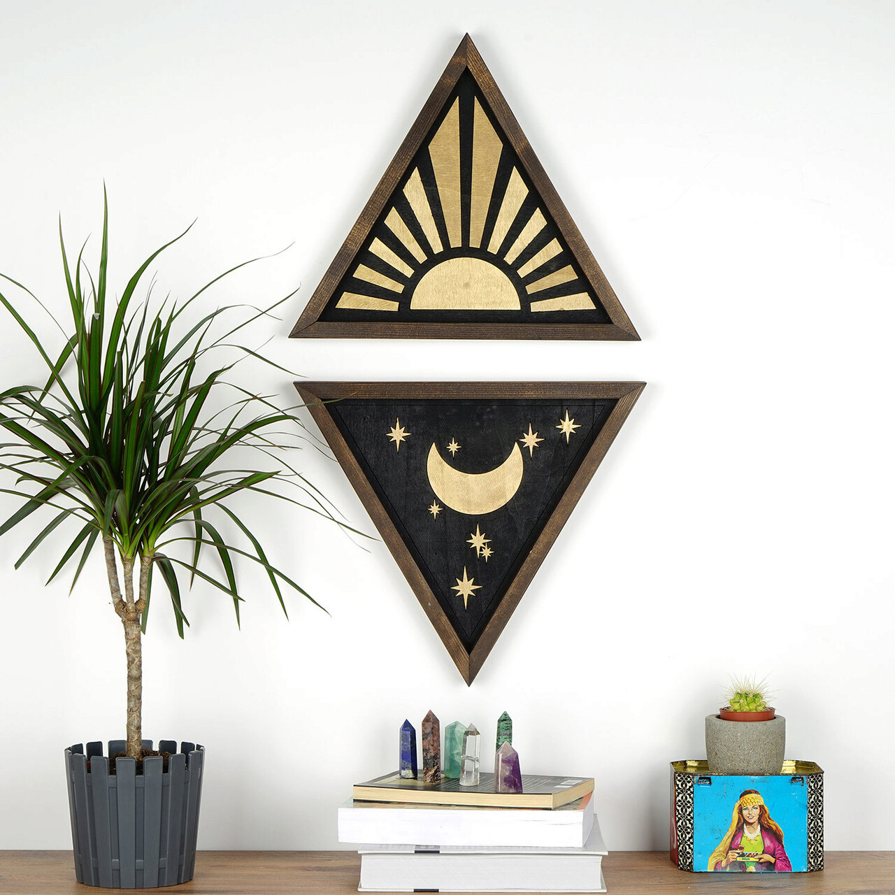 Decoratiune de perete, ART021, Lemn masiv, 35 x 30 x 3 cm, 2 piese, Multicolor