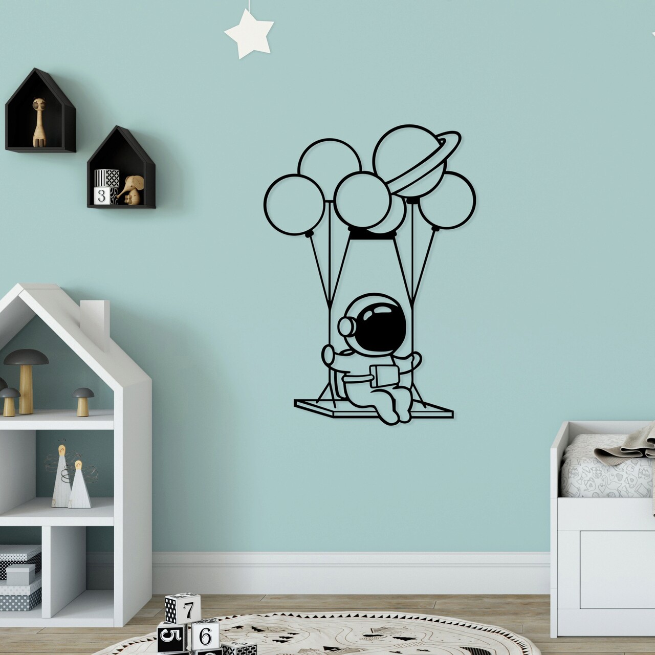 Decoratiune de perete, Astronaut 1, Metal, Dimensiune: 44 x 70 cm, Negru