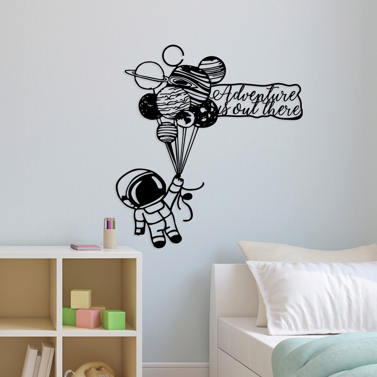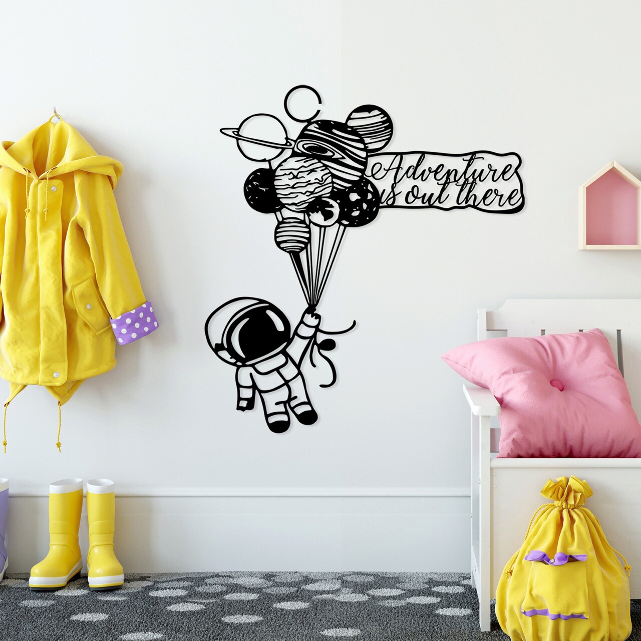 Decoratiune de perete, Astronaut 4, Metal, Dimensiune: 64 x 70 cm, Negru
