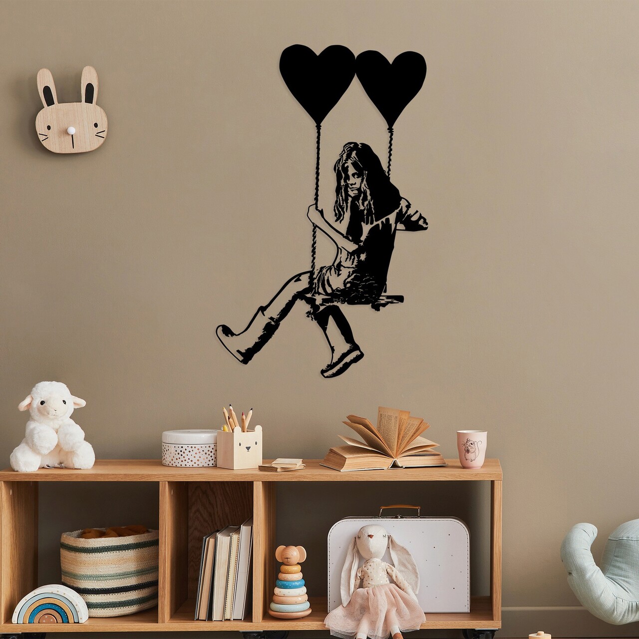 Decoratiune de perete, Banksy Art, Metal, Dimensiune: 50 x 79 cm, Negru
