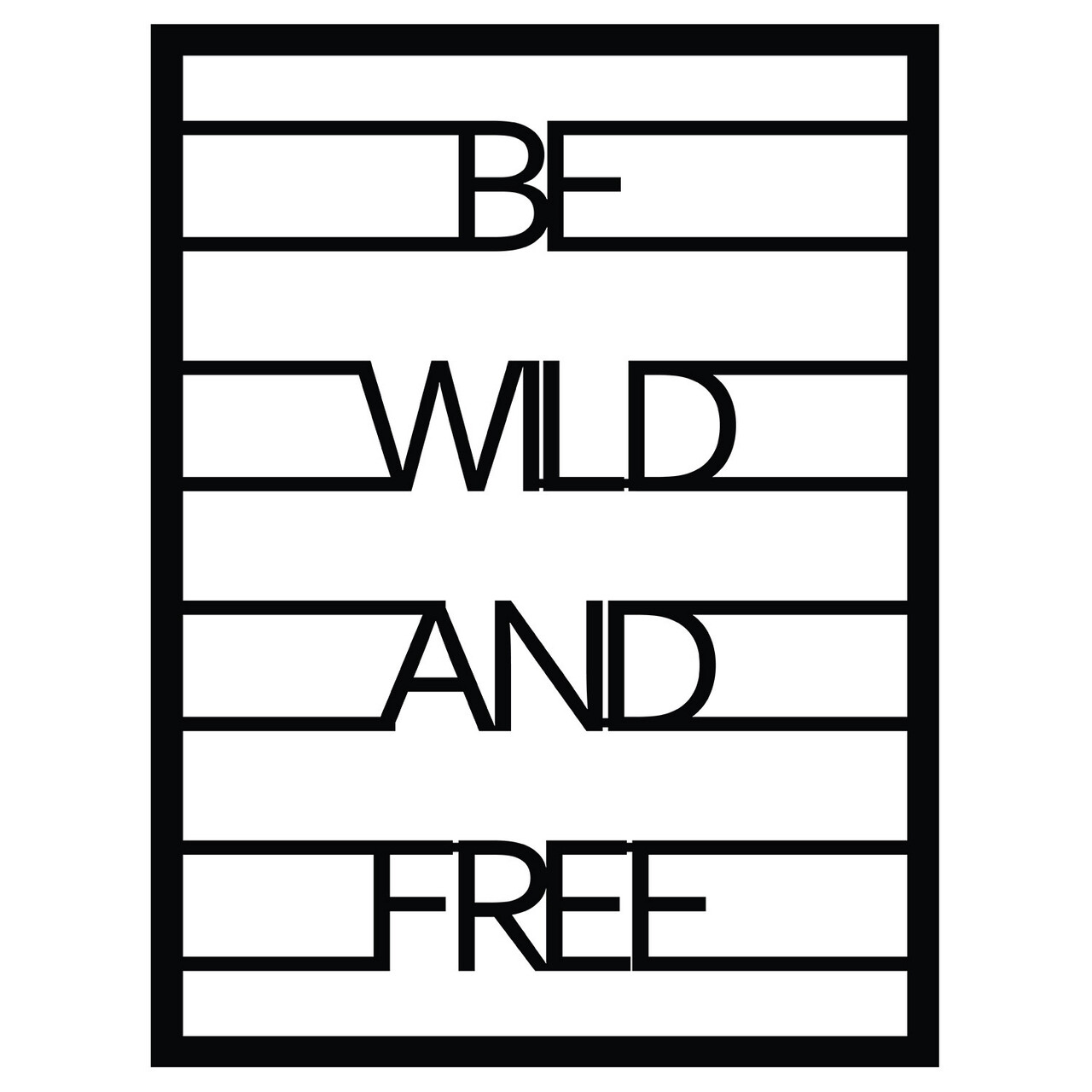 Decoratiune de perete, Be Wild And Free, metal, 40 x 52 cm, negru