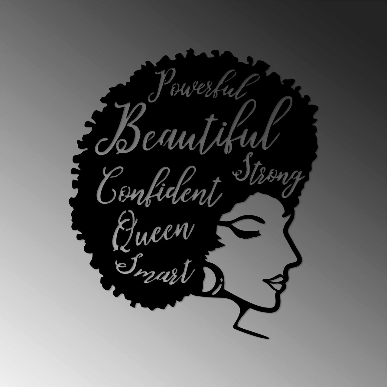 Decoratiune de perete, Beautiful / Confident / Queen, Metal, Dimensiune: 60 x 70 cm, Negru