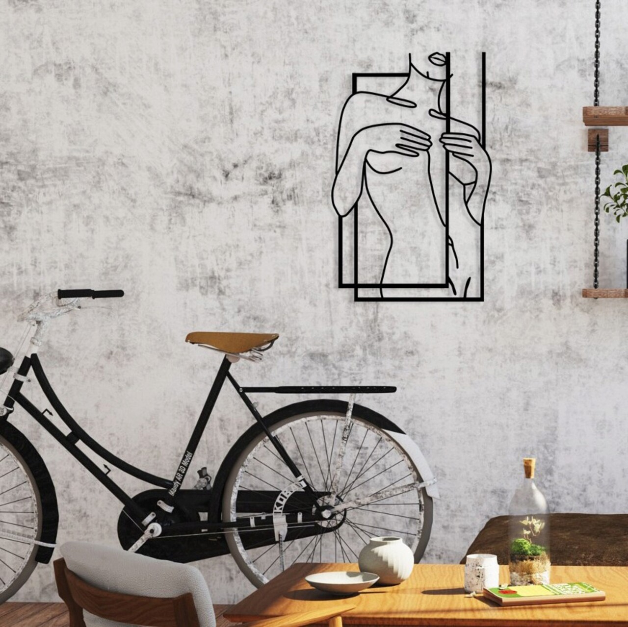 Decoratiune de perete, Beautiful Woman, metal, 32 x 50 cm, negru