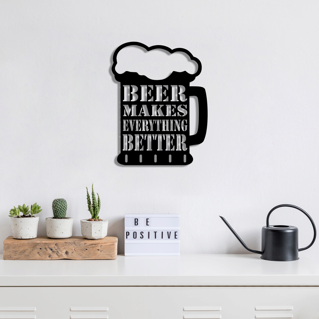 Decoratiune de perete, Beer, Metal, Dimensiune: 35 x 45 cm, Negru
