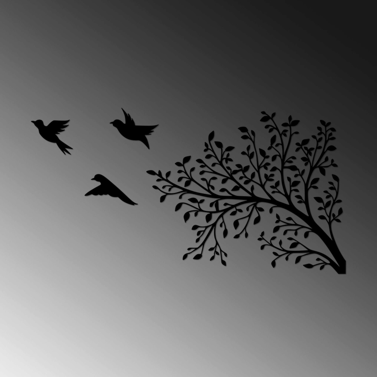 Decoratiune de perete, Birds From The Branch, Metal, 70 x 37 cm, Negru