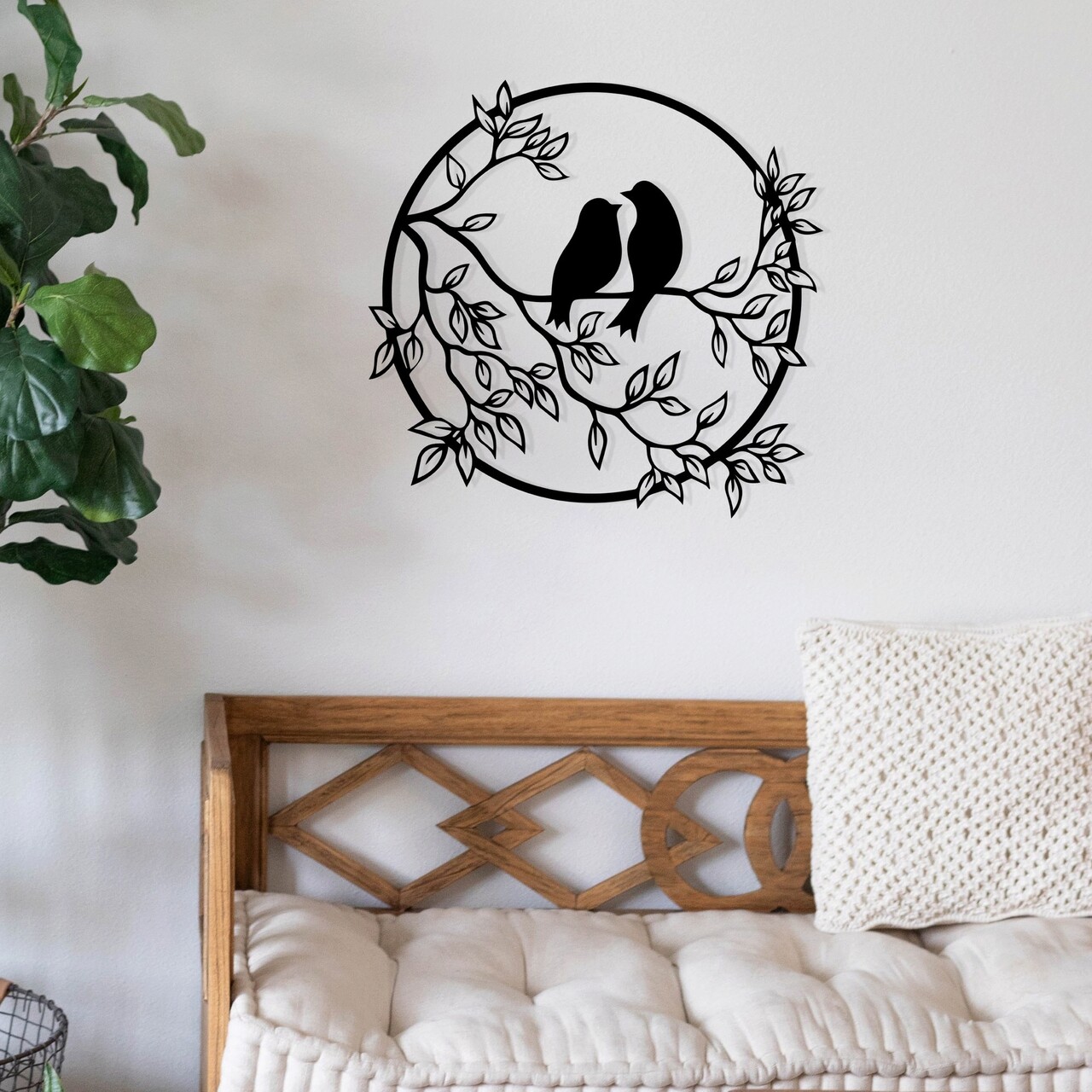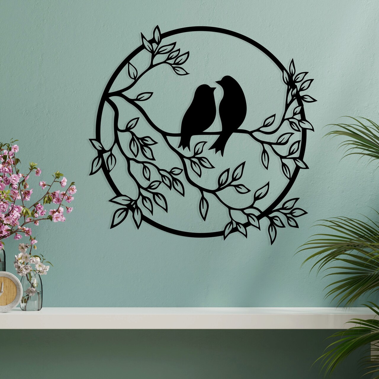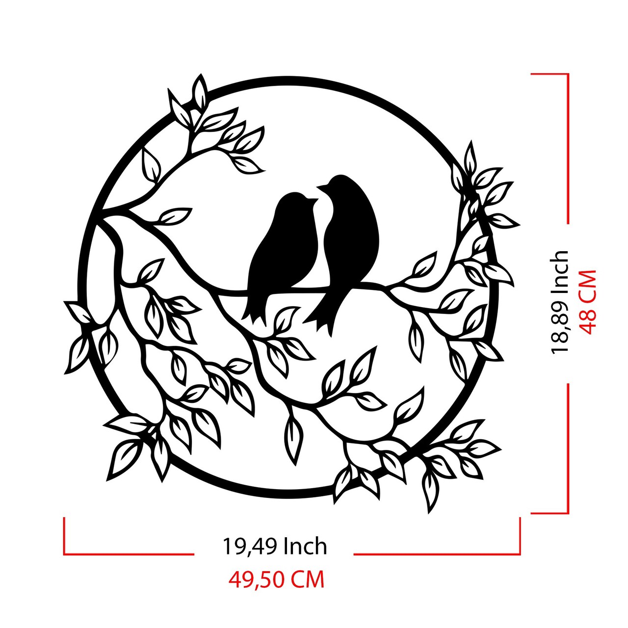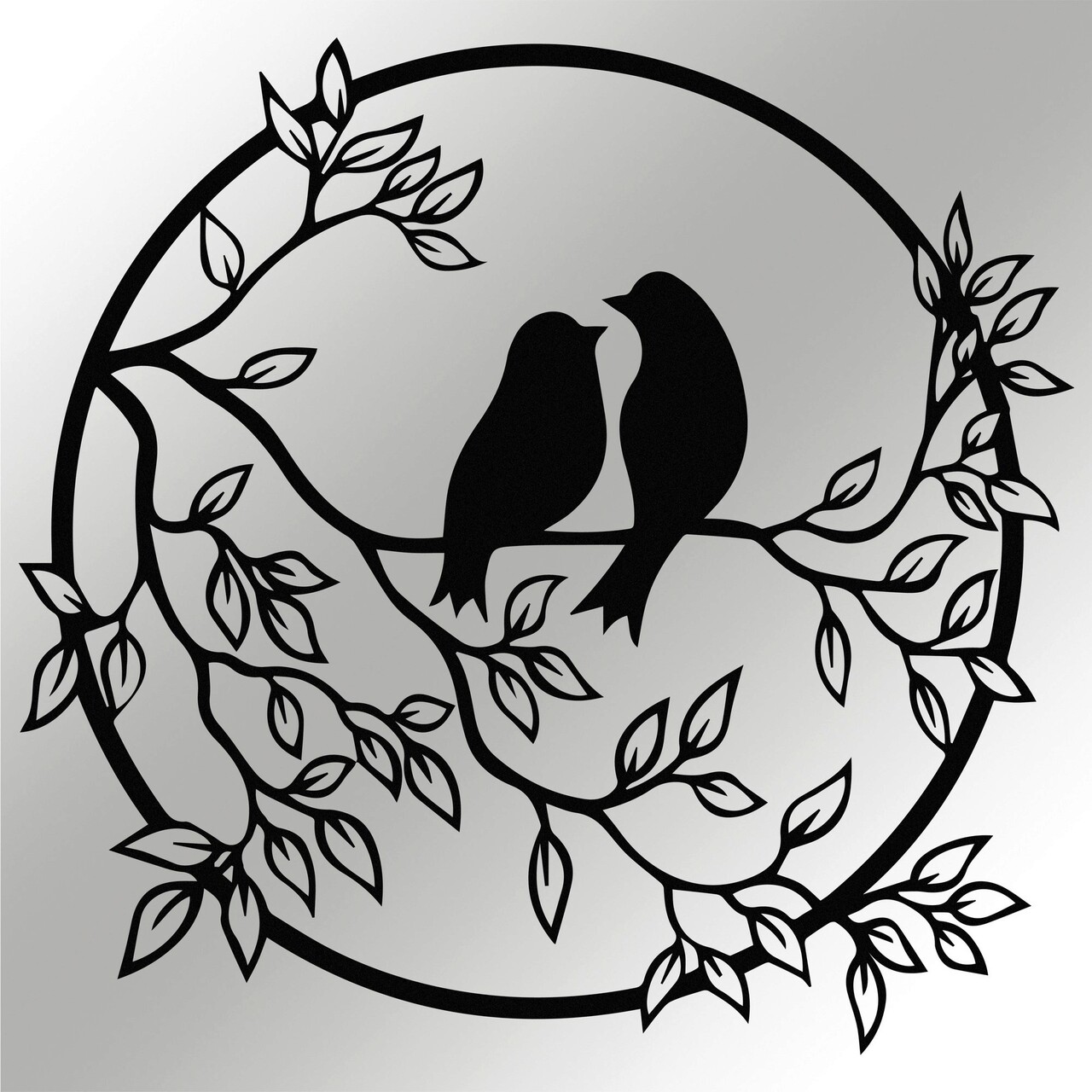 Decoratiune de perete, Birds In The Tree, metal, 49.5 x 48 cm, negru