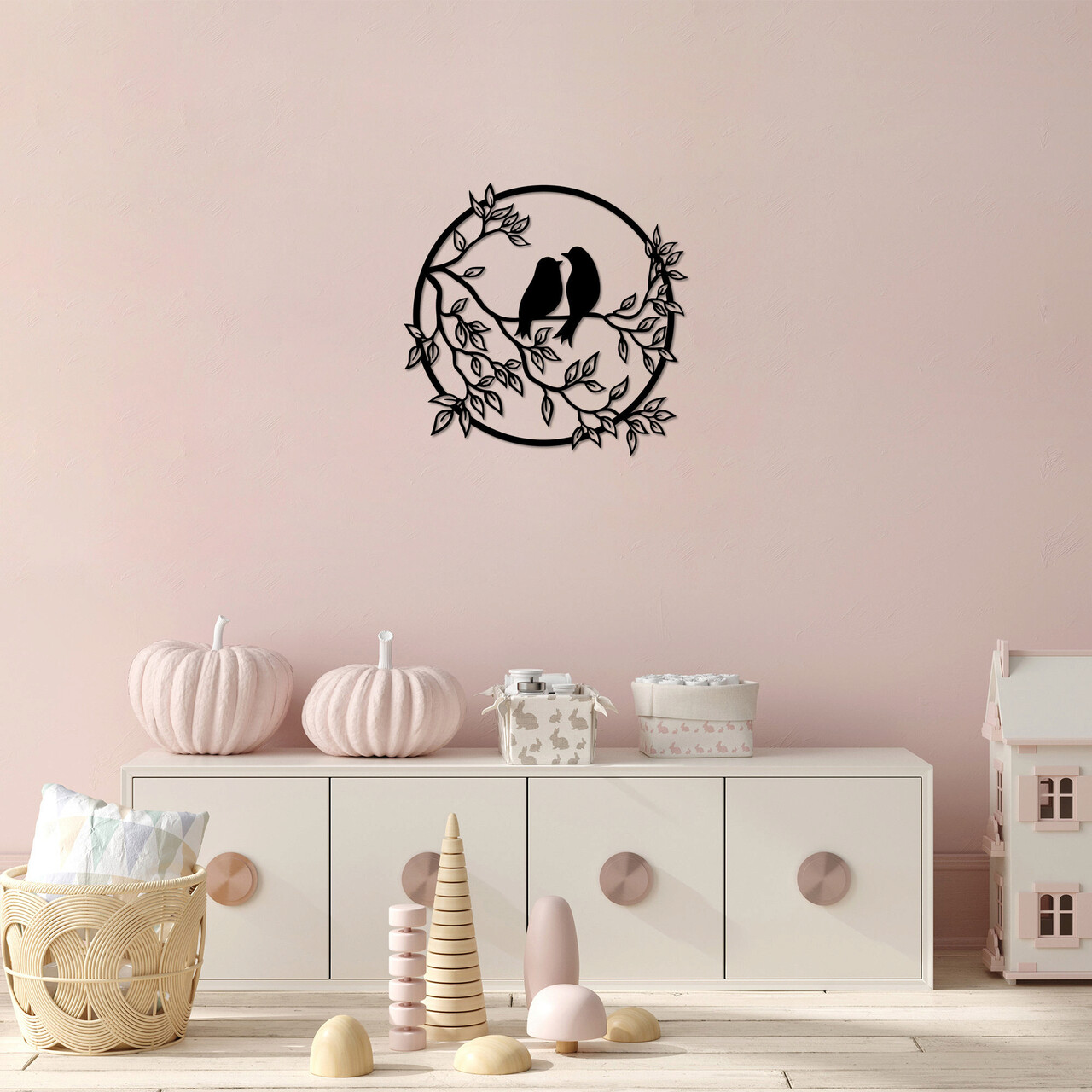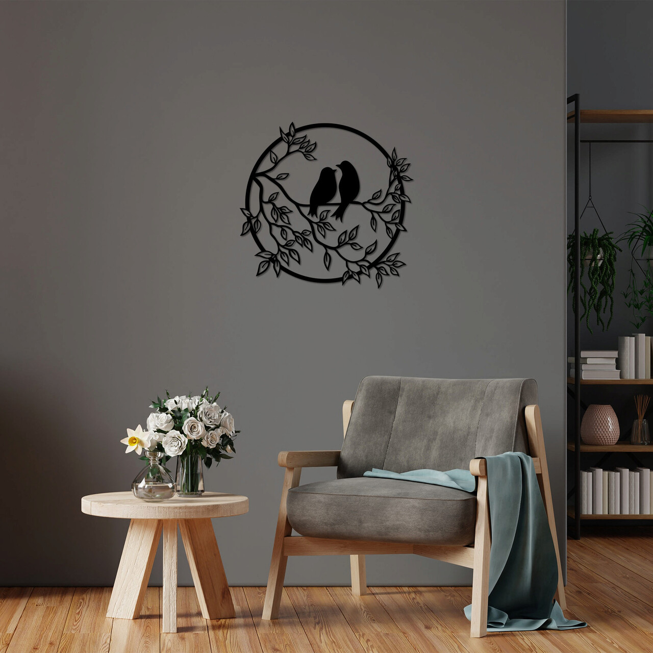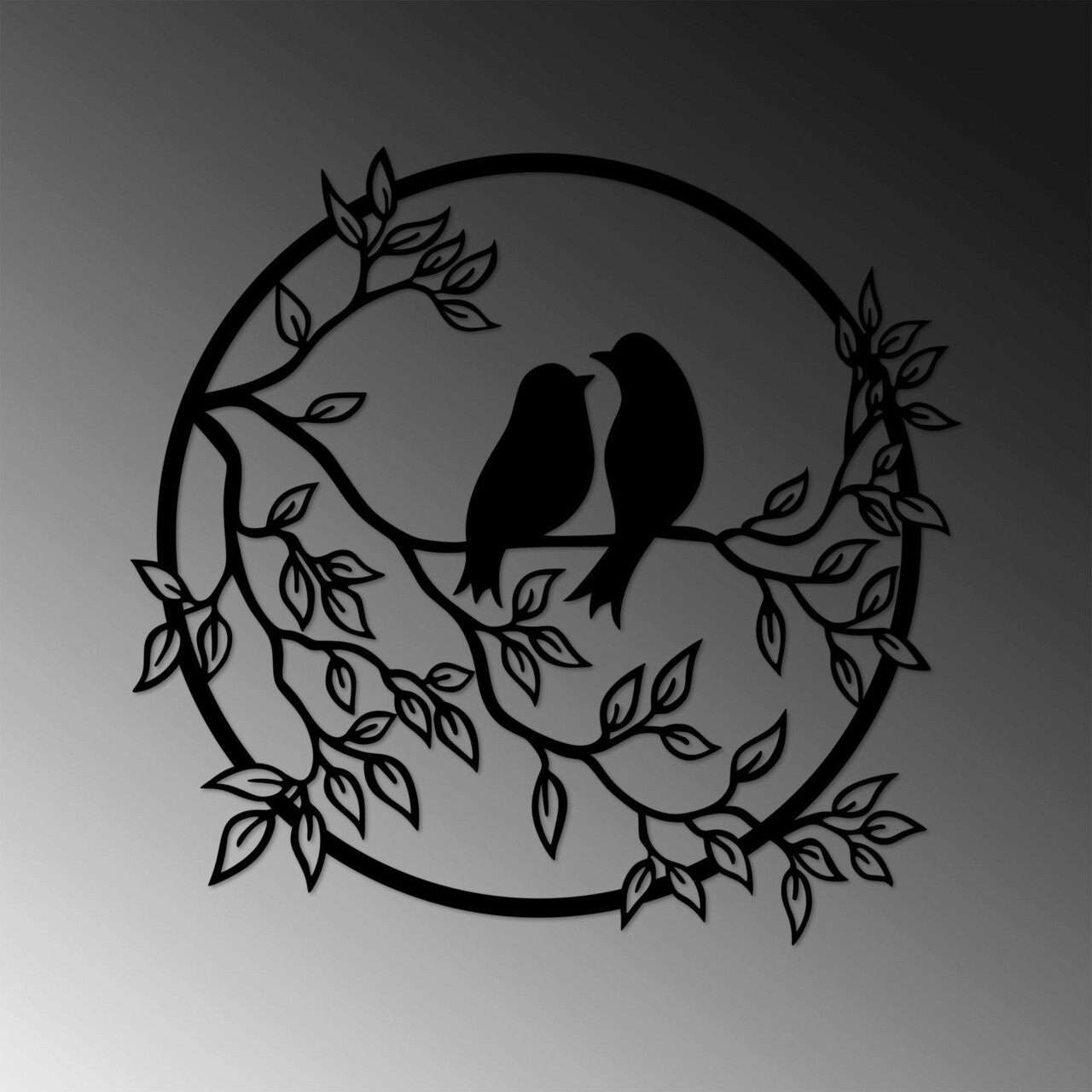 Decoratiune de perete, Birds Love 2, Metal, Dimensiune: 55 x 53 cm, Negru