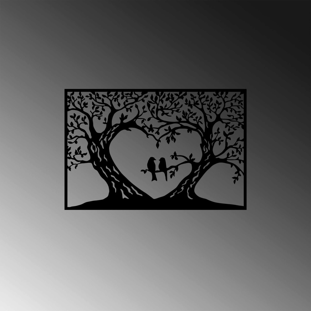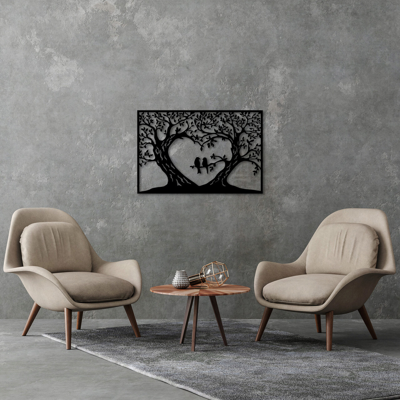 Decoratiune de perete, Birds Love, Metal, Dimensiune: 69 x 46 cm, Negru