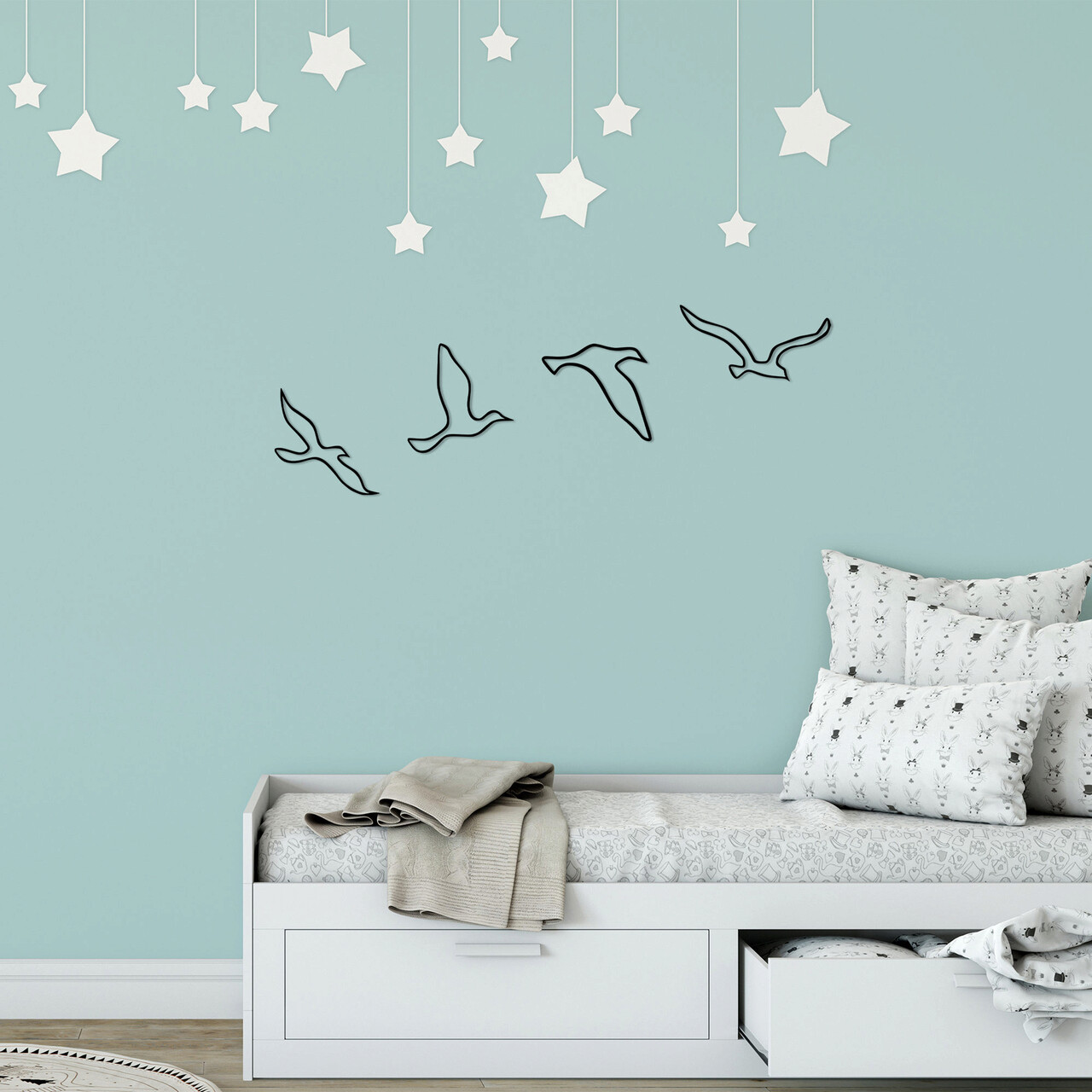 Decoratiune de perete, Birds, Metal, 22 x 11 cm, Negru