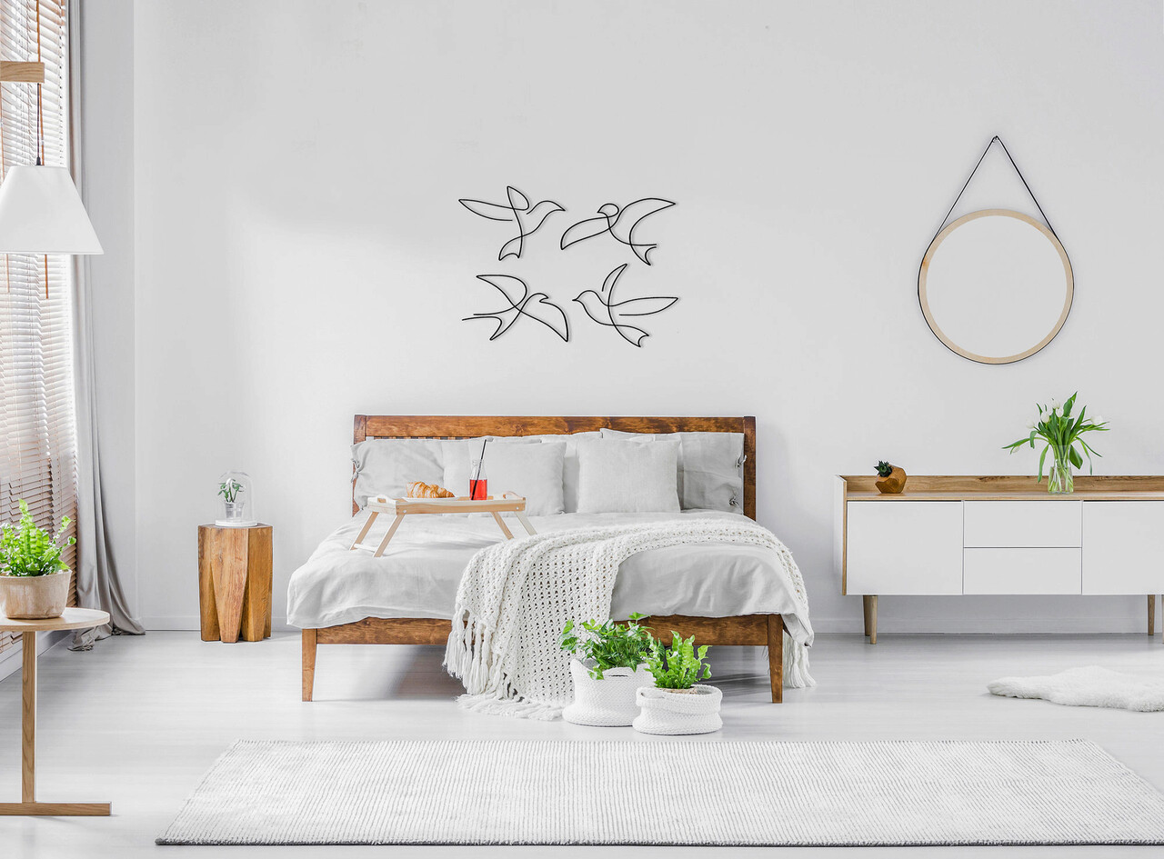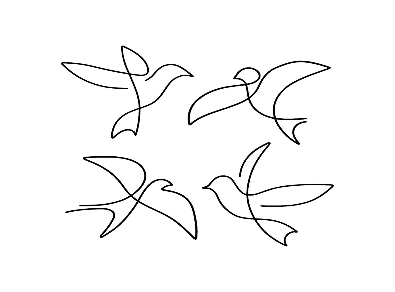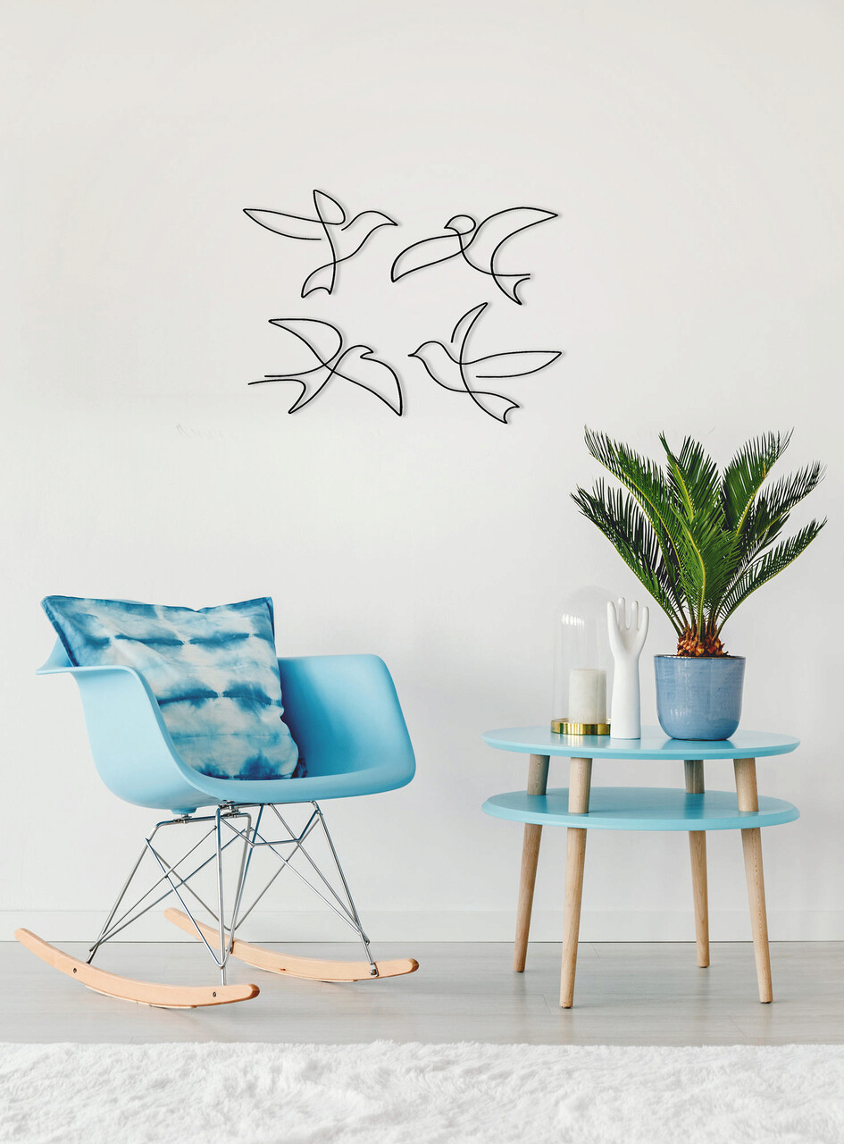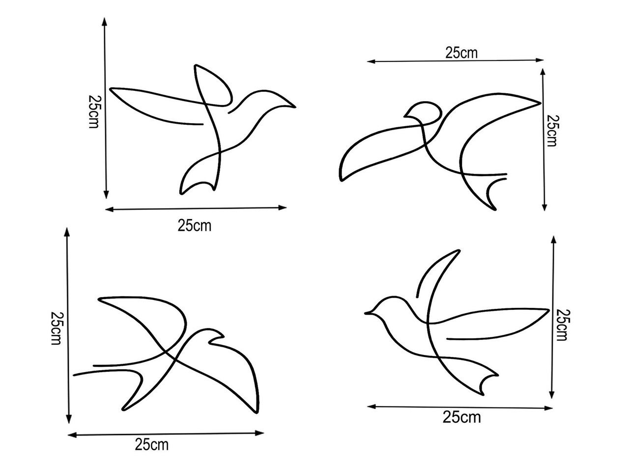 Decoratiune de perete, Birds, Metal, 25 x 25 cm, 4 piese, Negru