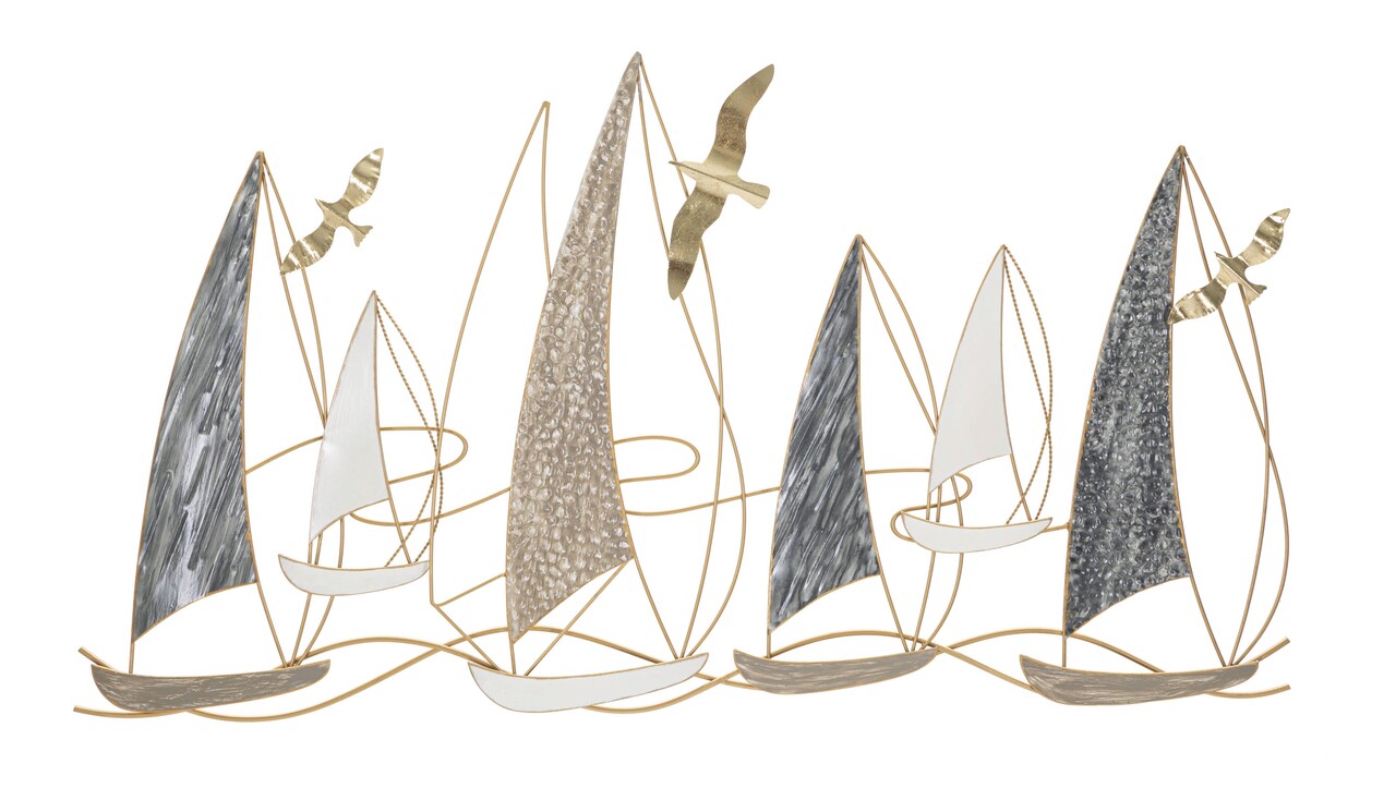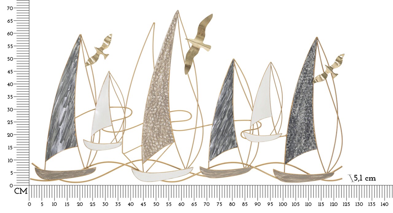Panou decorativ de perete 3D din fier compus din barci cu vele in regata.