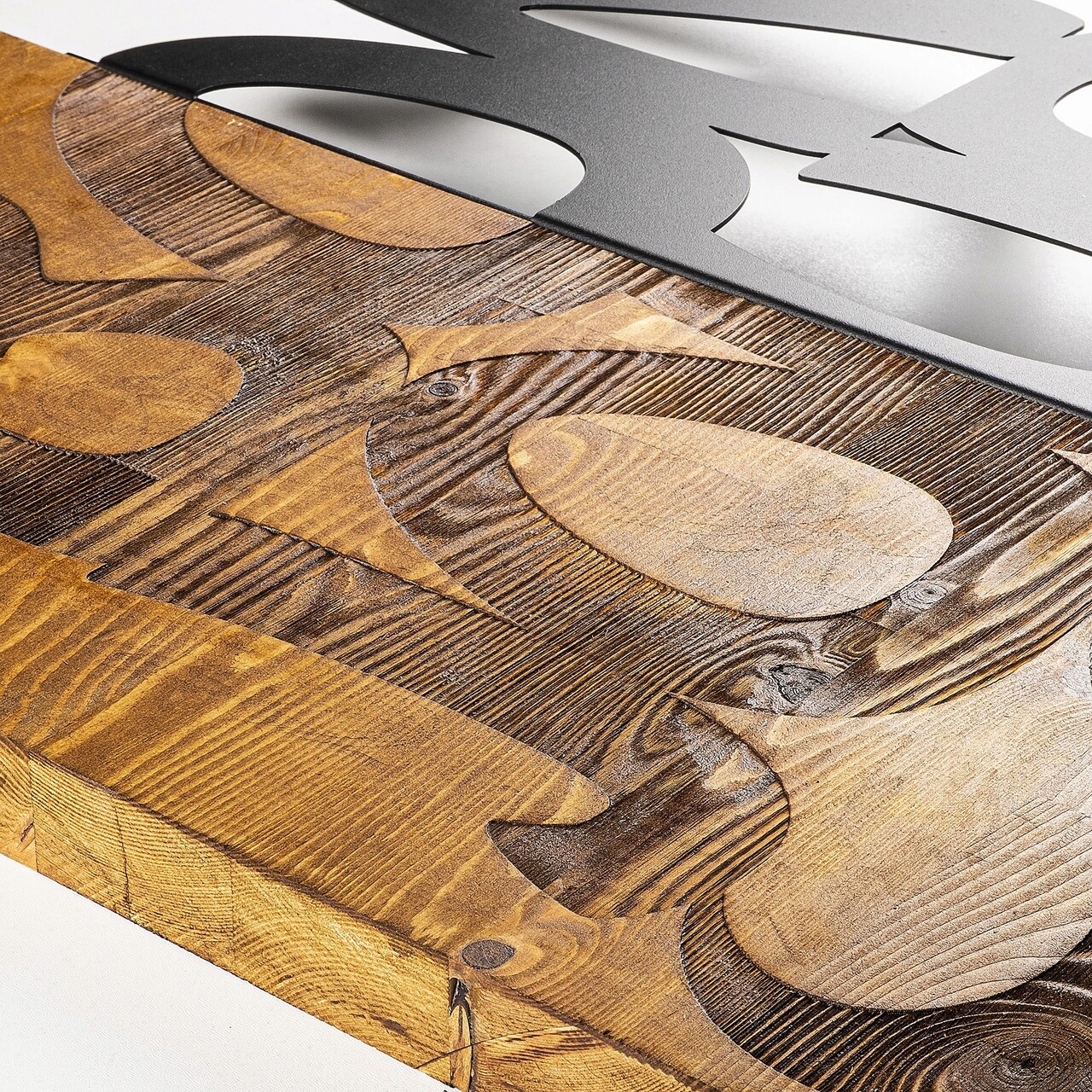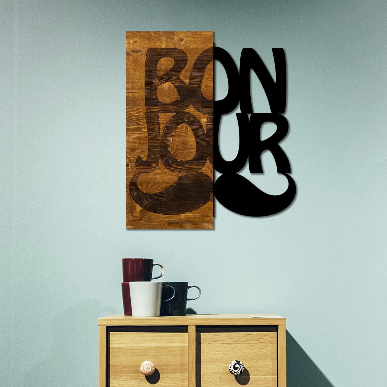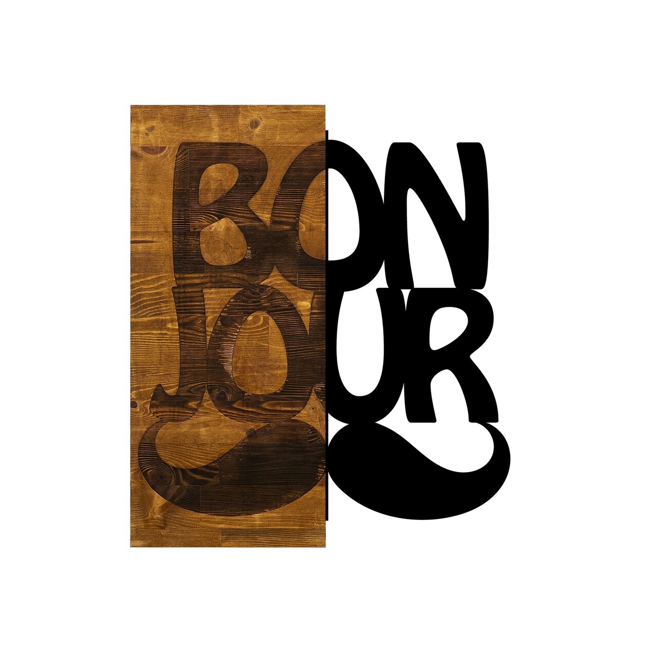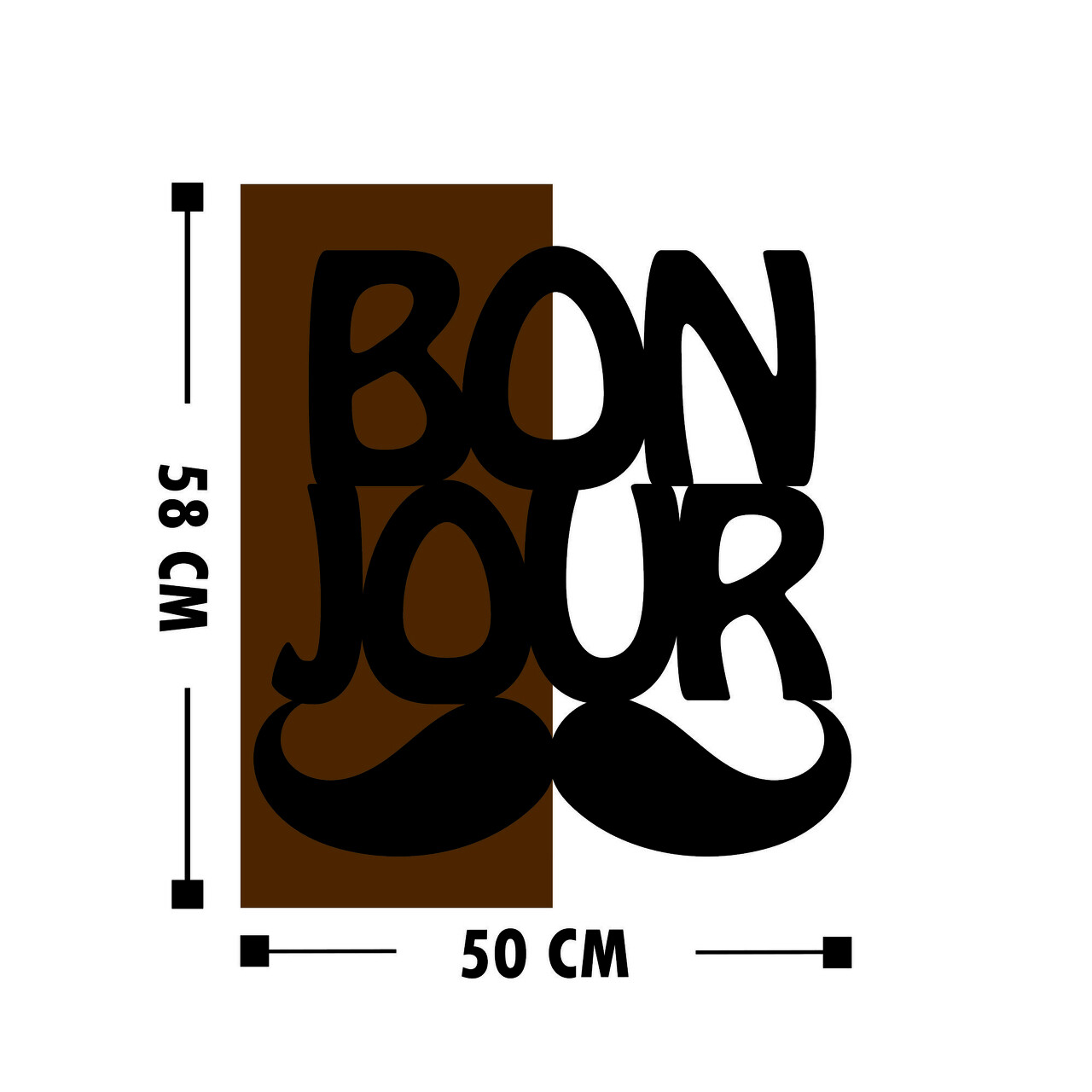 Decoratiune de perete, Bonjour, 50% lemn/50% metal, Dimensiune: 50 x 58 cm, Nuc / Negru