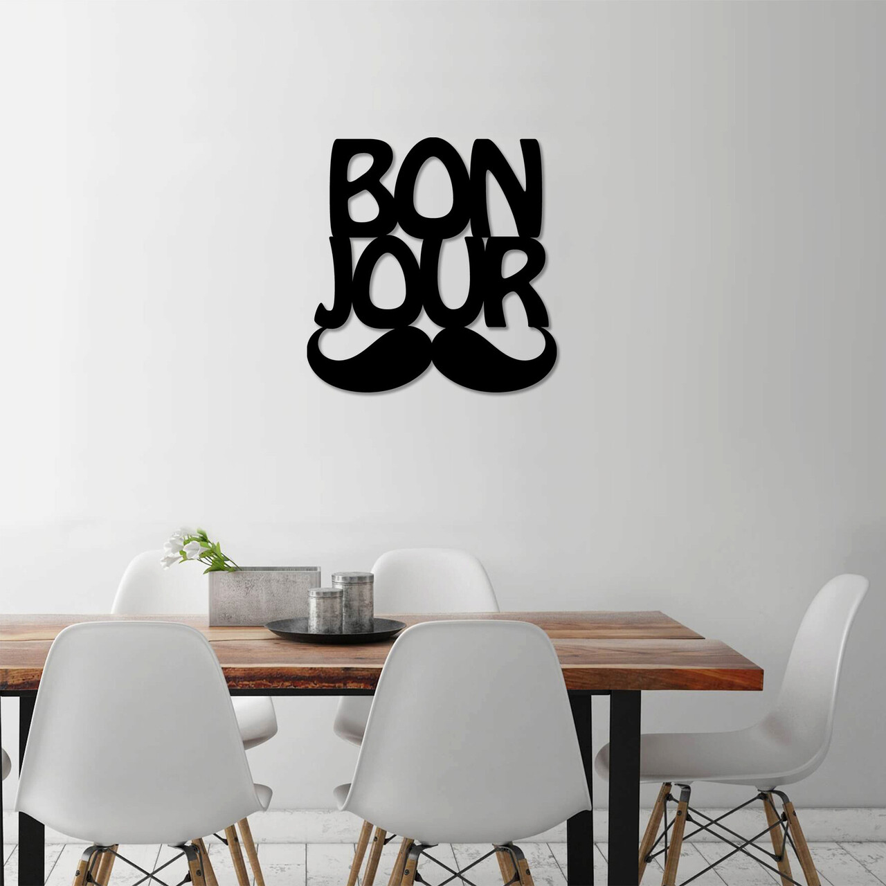 Decoratiune de perete, Bonjur, Metal, Dimensiune: 49 x 49 cm, Negru