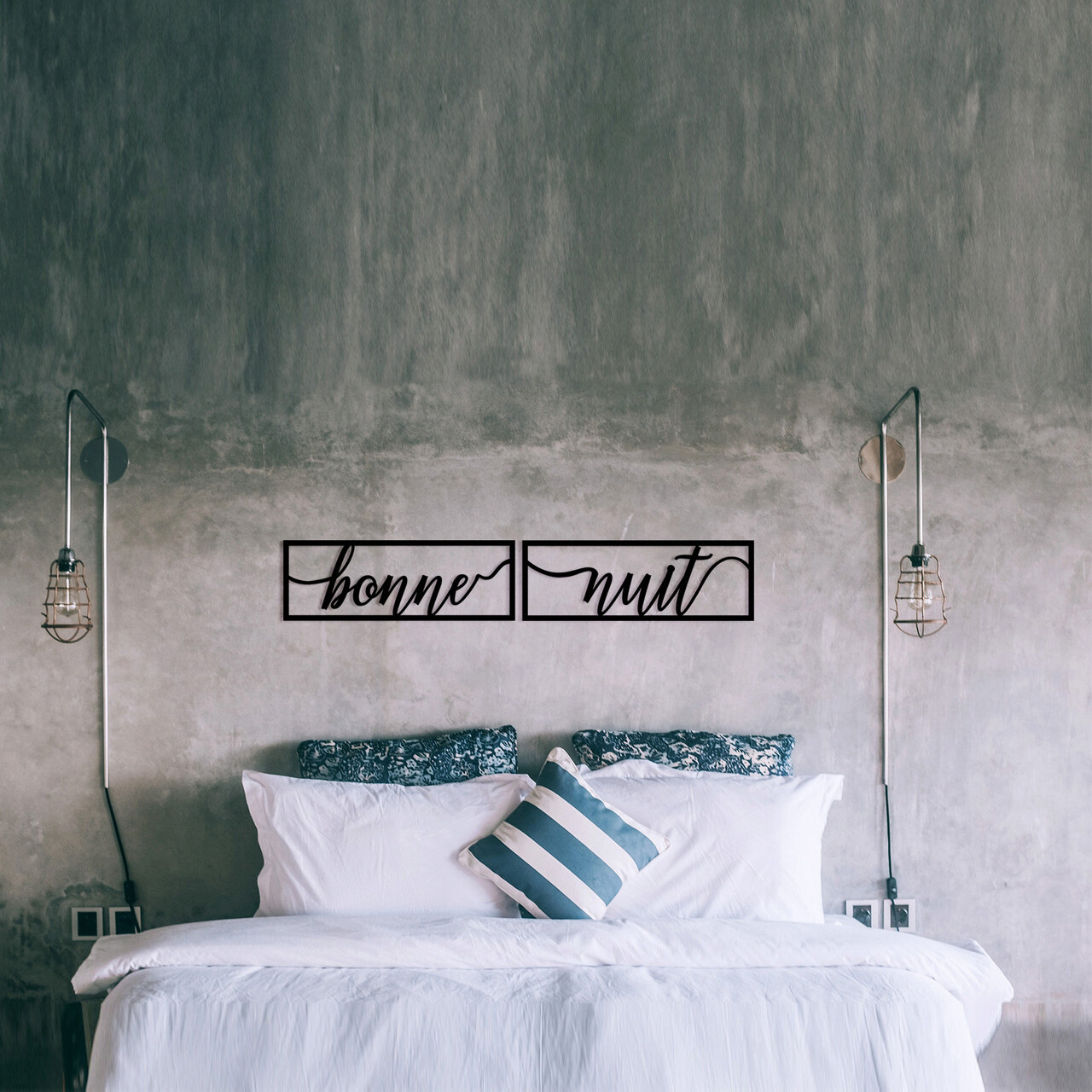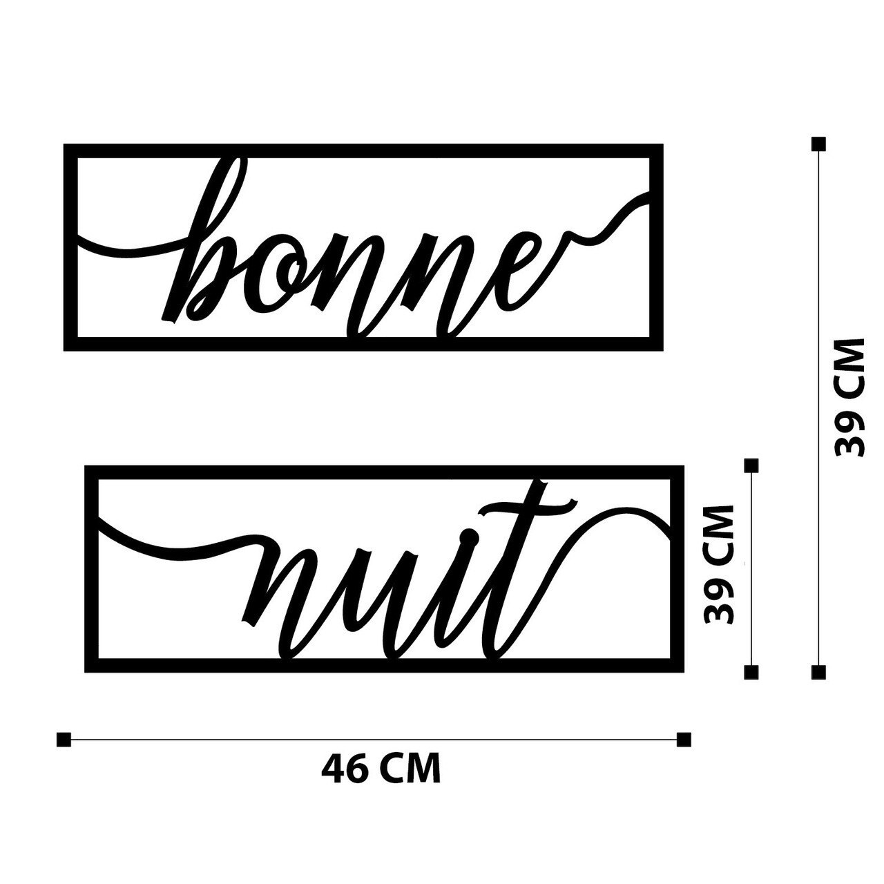Decoratiune de perete, Bonne Nuit 1, metal, 90 x 15 cm, negru