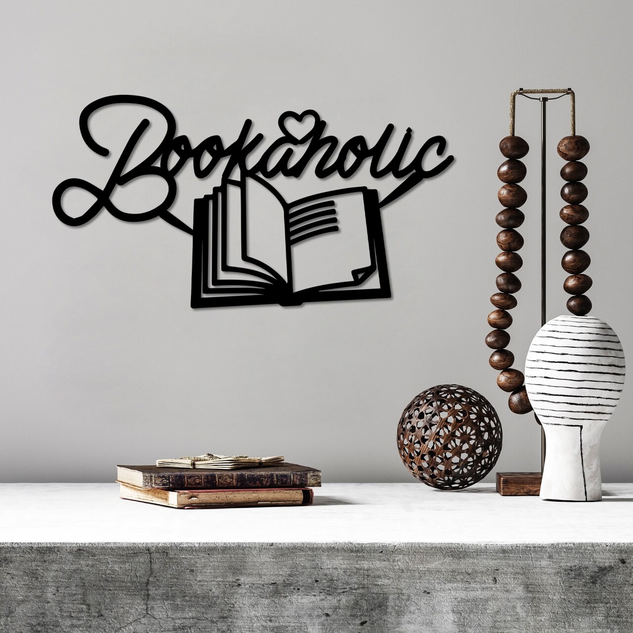 Decoratiune de perete, Book a Holic, Dimensiune: 58 x 30 cm , Negru