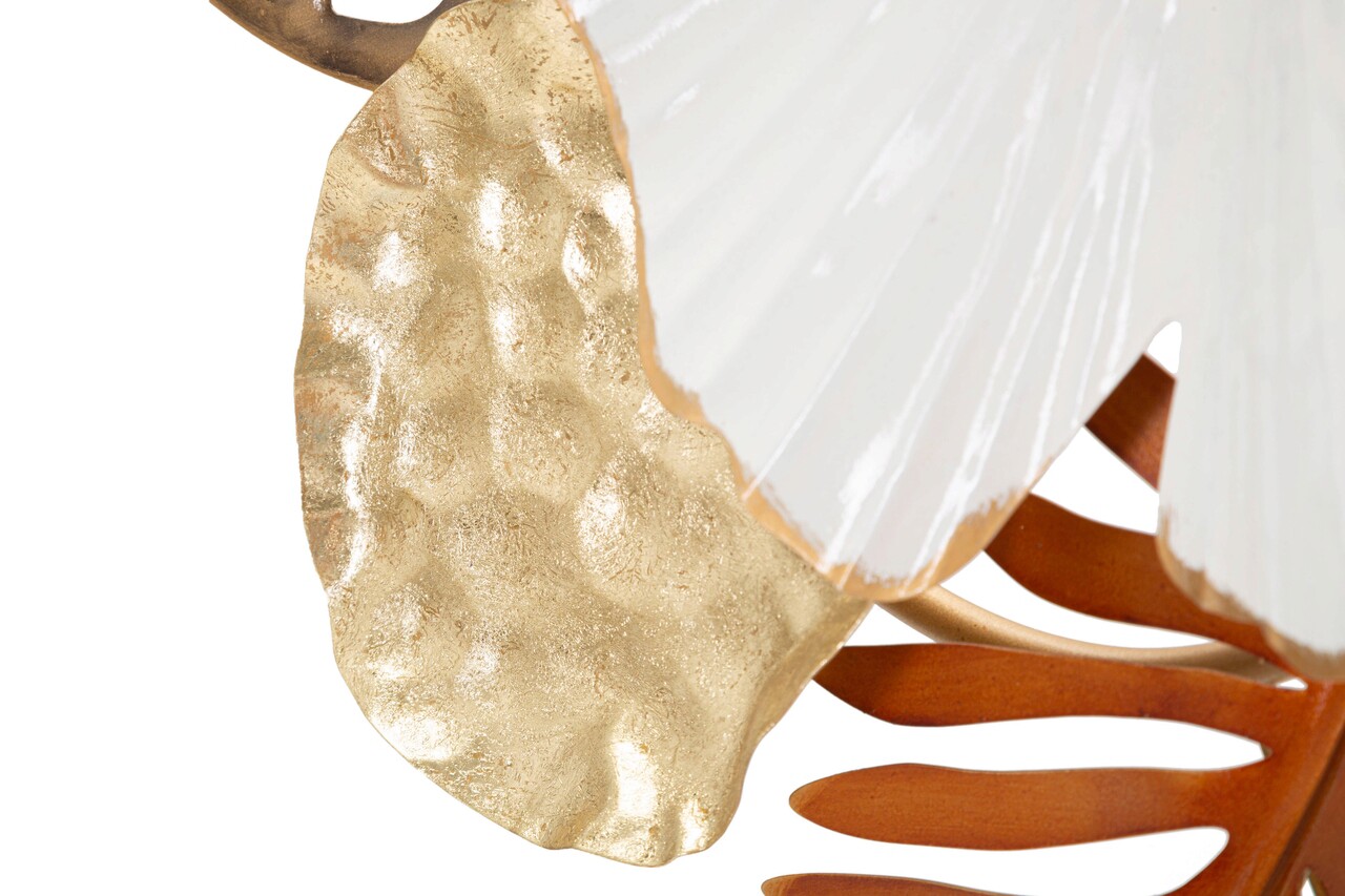 Panou decorativ de perete 3D din fier reprezentand un ansamblu de frunze in diverse culori.