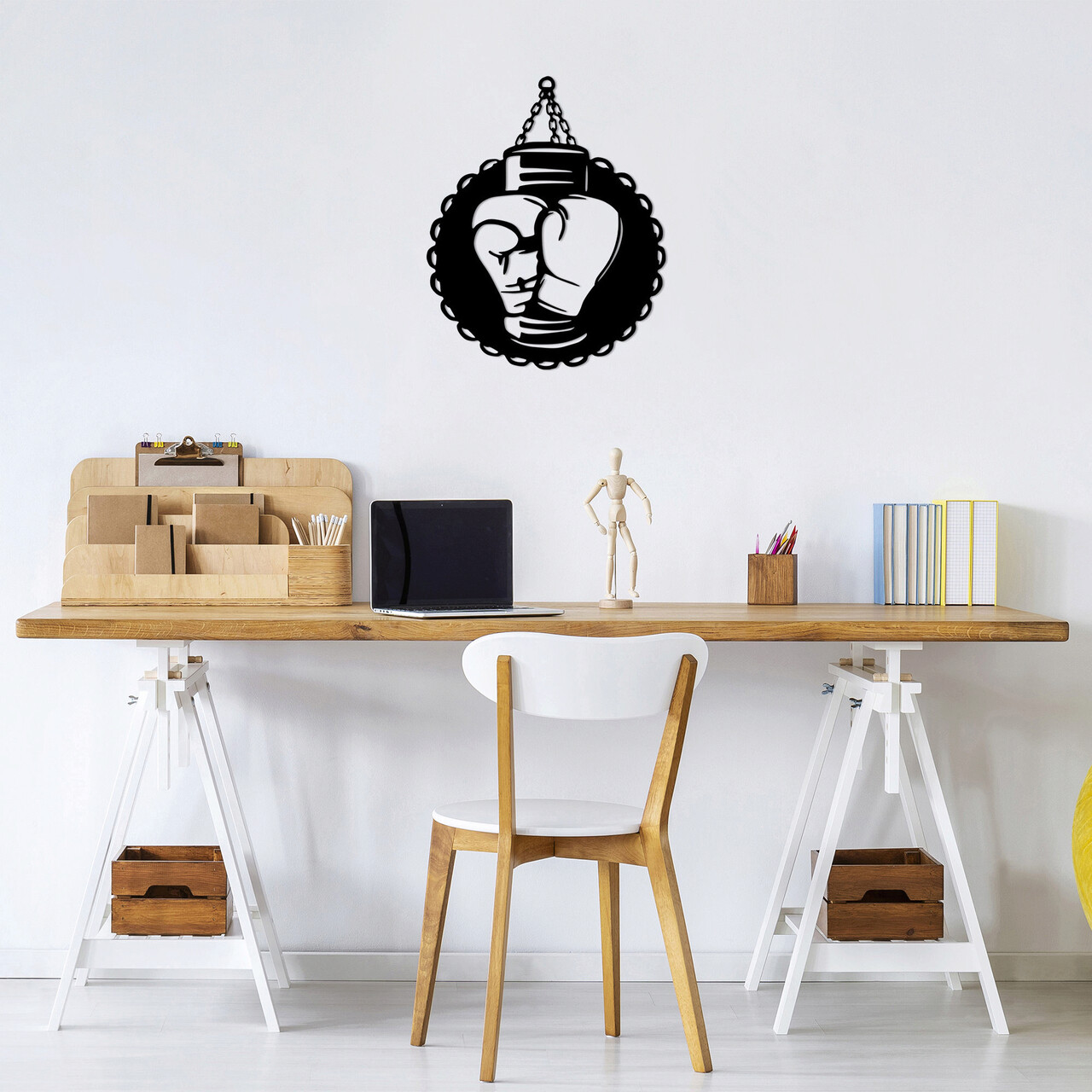 Decoratiune de perete, Boxing, Metal, Dimensiune: 57 x 70 cm, Negru
