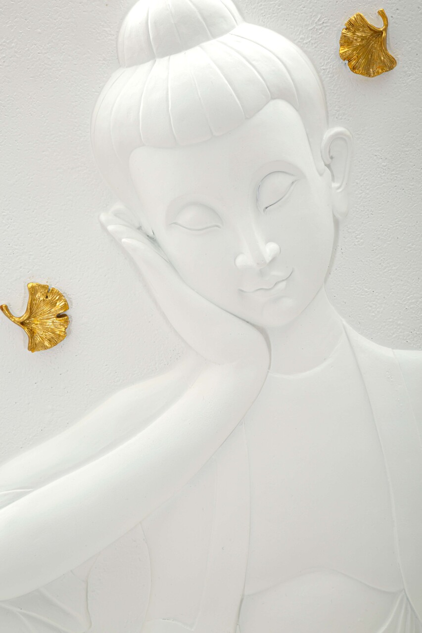 Decoratiune de perete Buddha, Mauro Ferretti, 46x55.5 cm, polirasina, alb/auriu