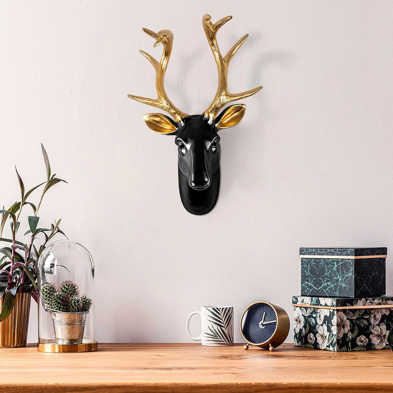 Decoratiune de perete, Bust of Deer, 26x38x17 cm, Poliester, Aur/Negru