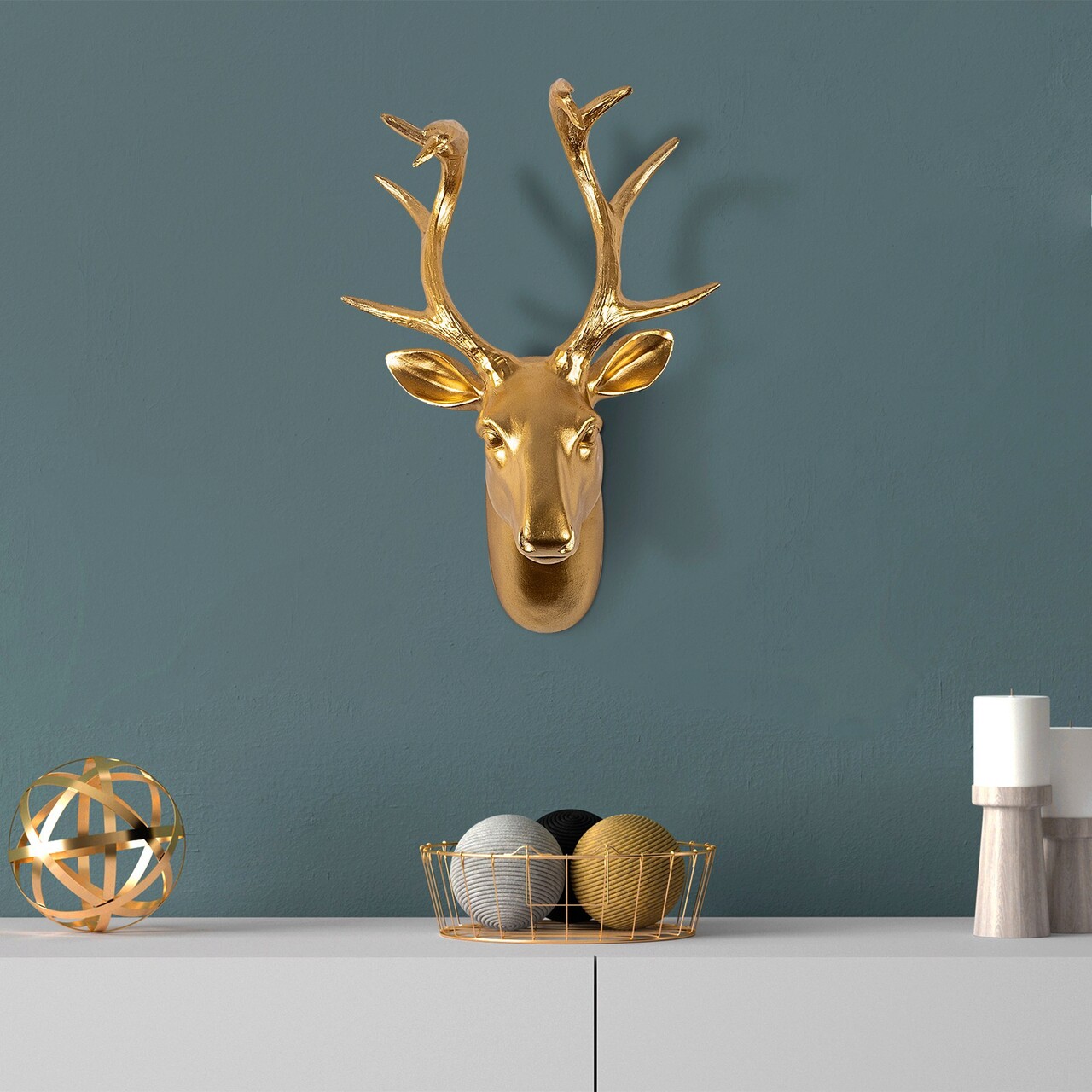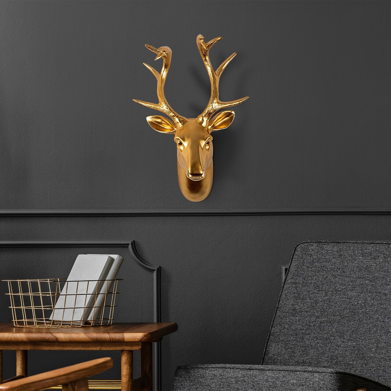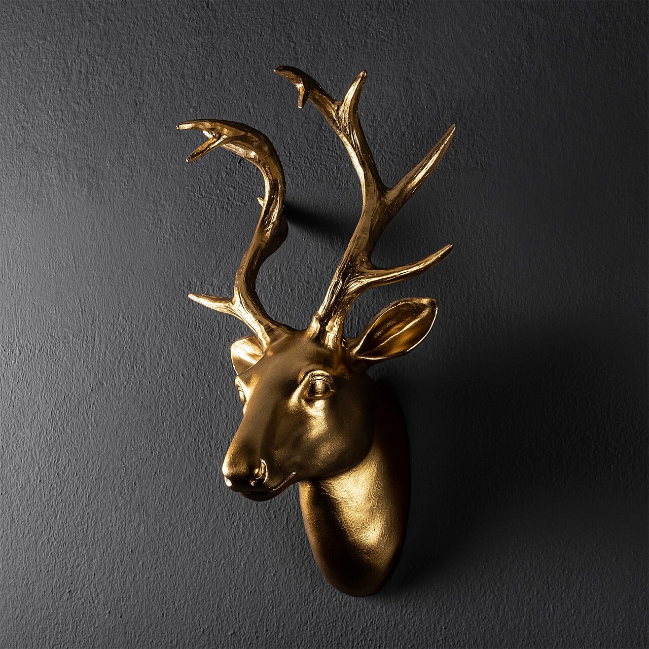 Decoratiune de perete, Bust of Deer, Poliester, Latime: 26 cm, Auriu