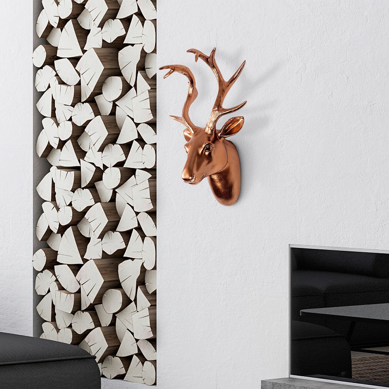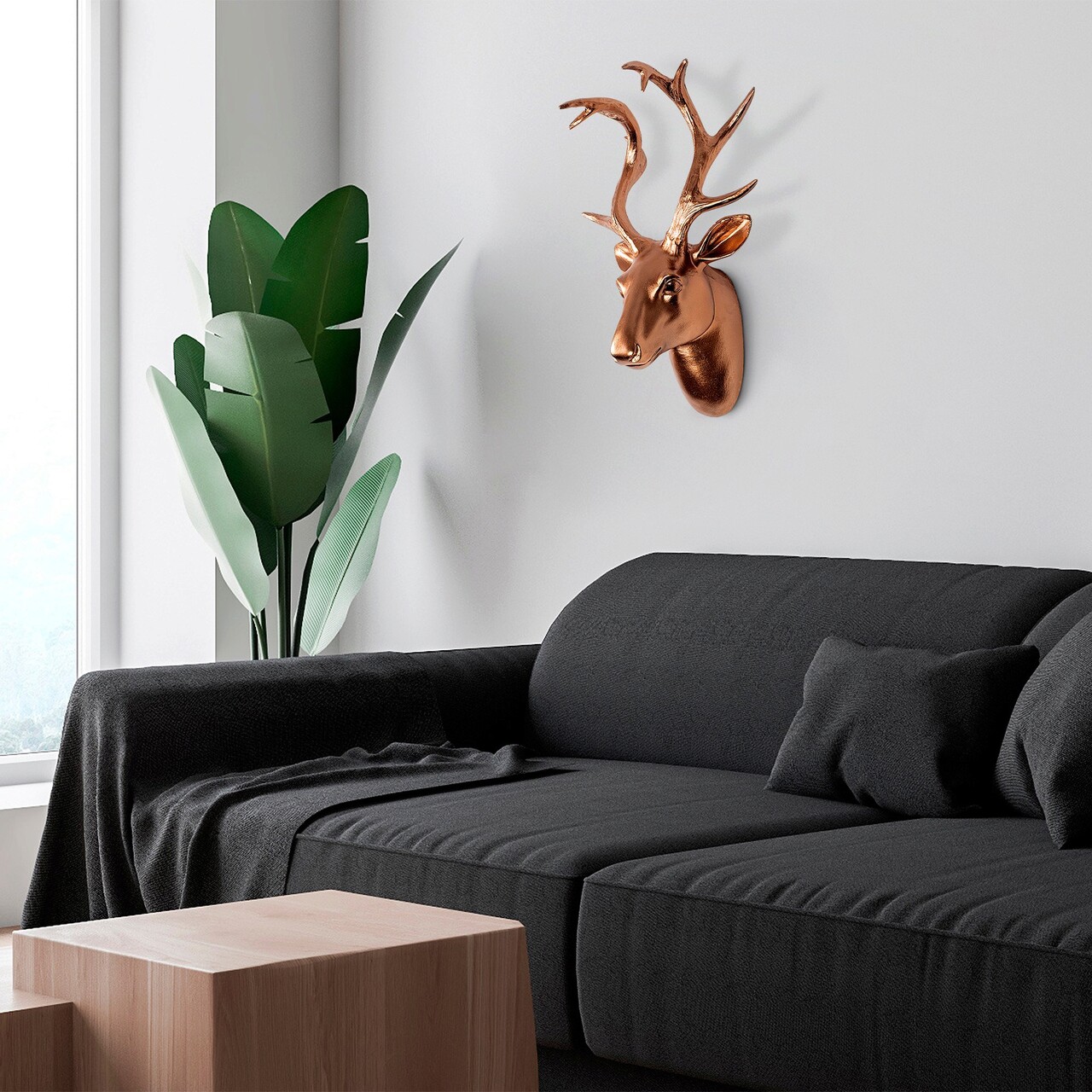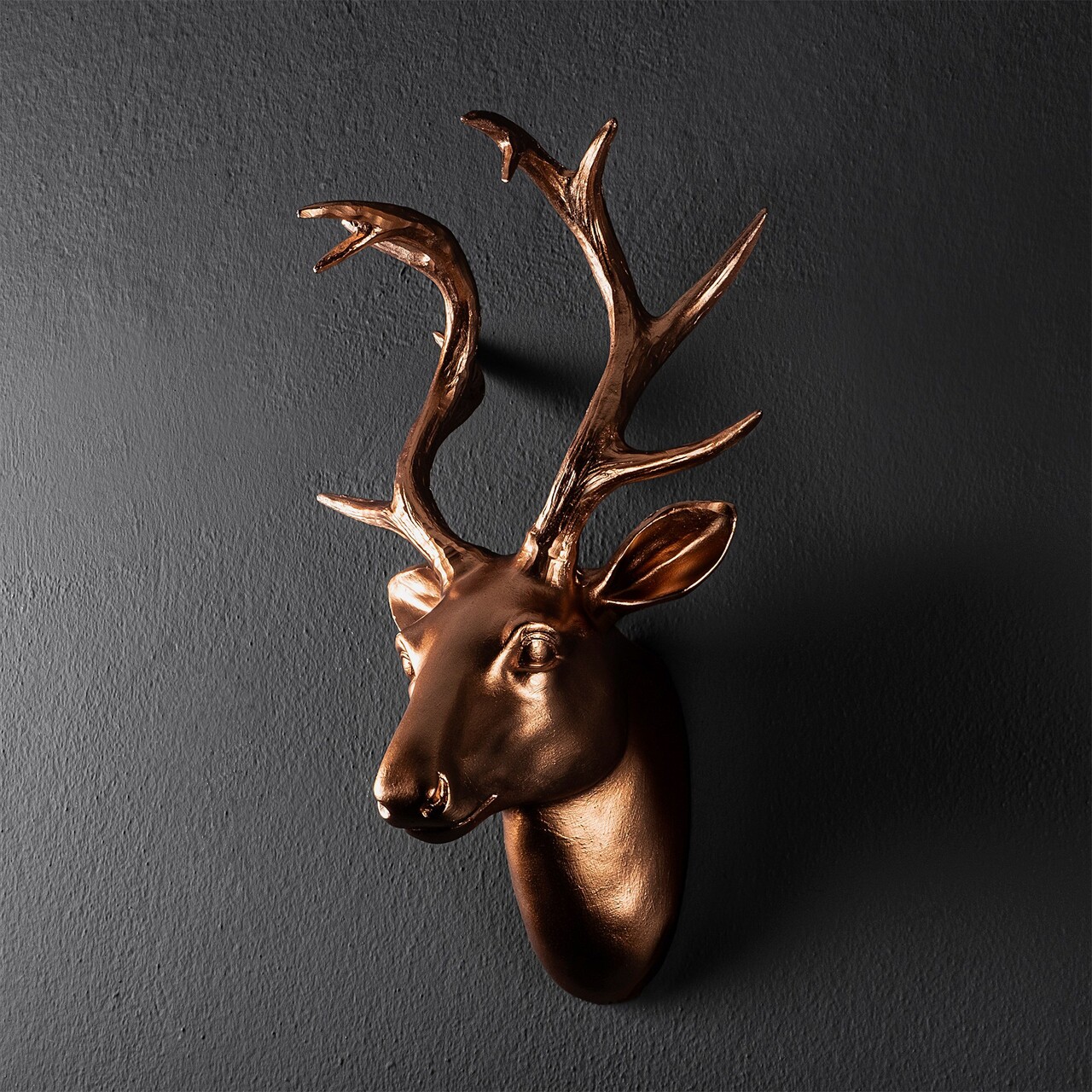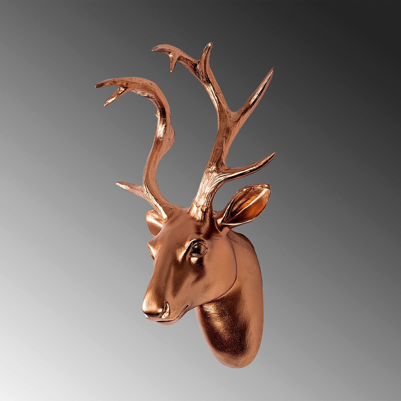 Decoratiune de perete, Bust of Deer, Poliester, Latime: 26 cm, Bronz