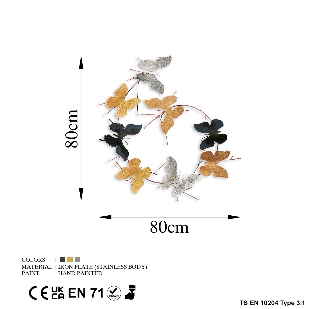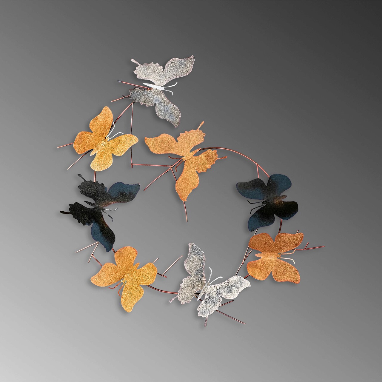 Decoratiune de perete, Butterflies, Metal, 80 x 80 x 4 cm, Multicolor