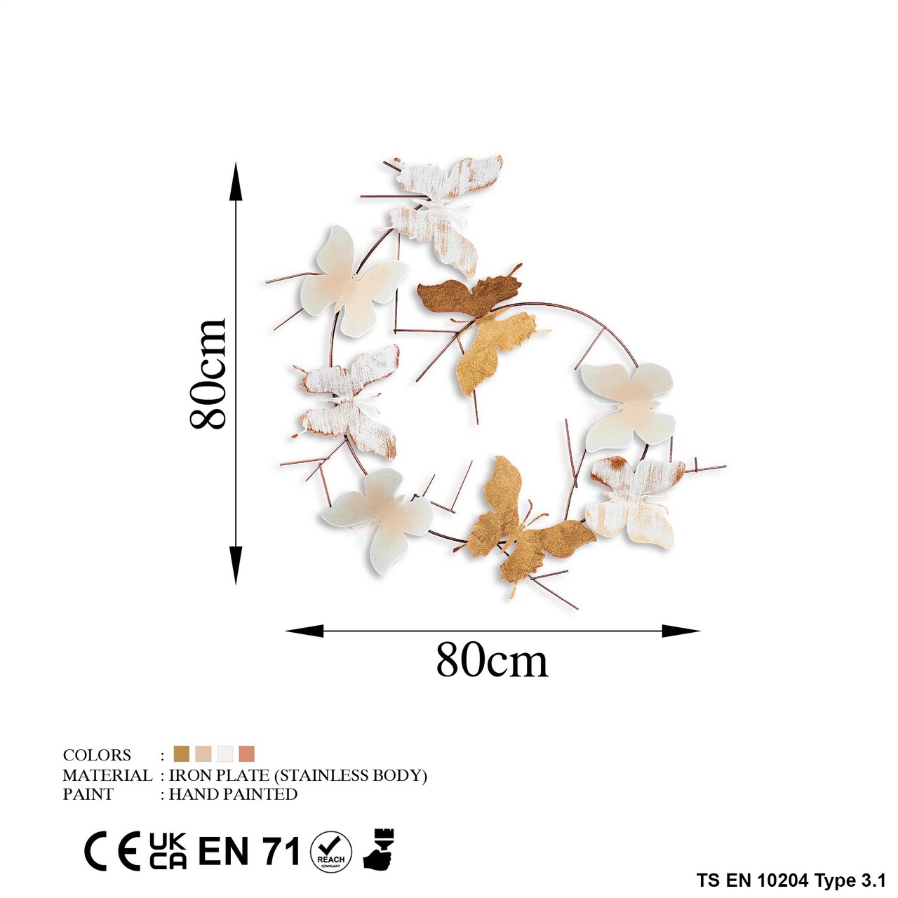 Decoratiune de perete, Butterflies, Metal, 80 x 80 x 4 cm, Multicolor