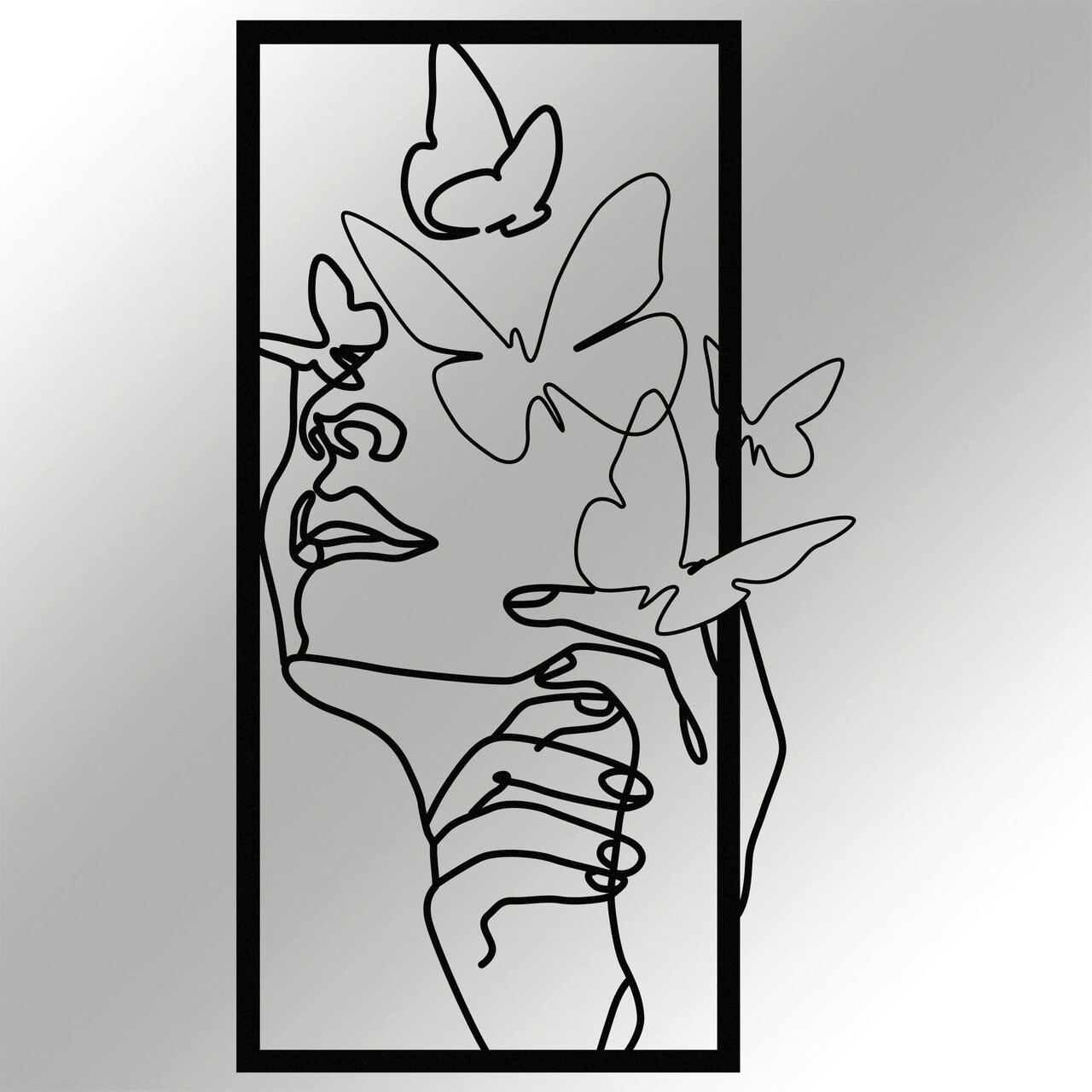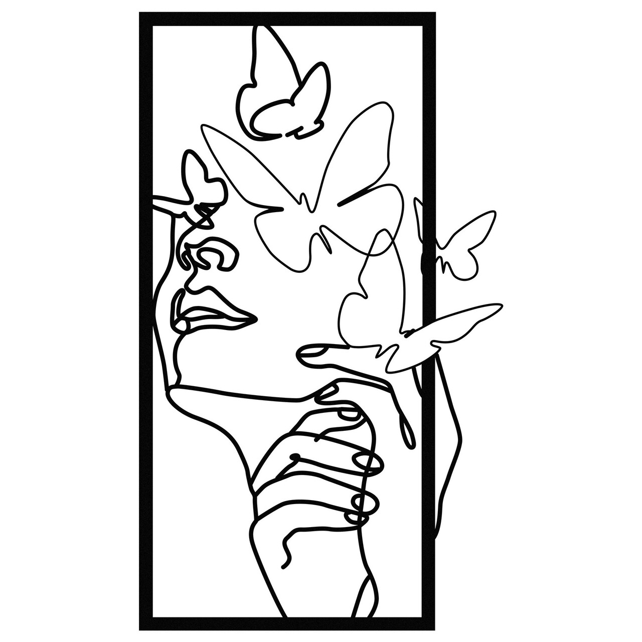 Decoratiune de perete, Butterfly Face Female, Metal, Dimensiune: 35,5 x 60 cm, Negru