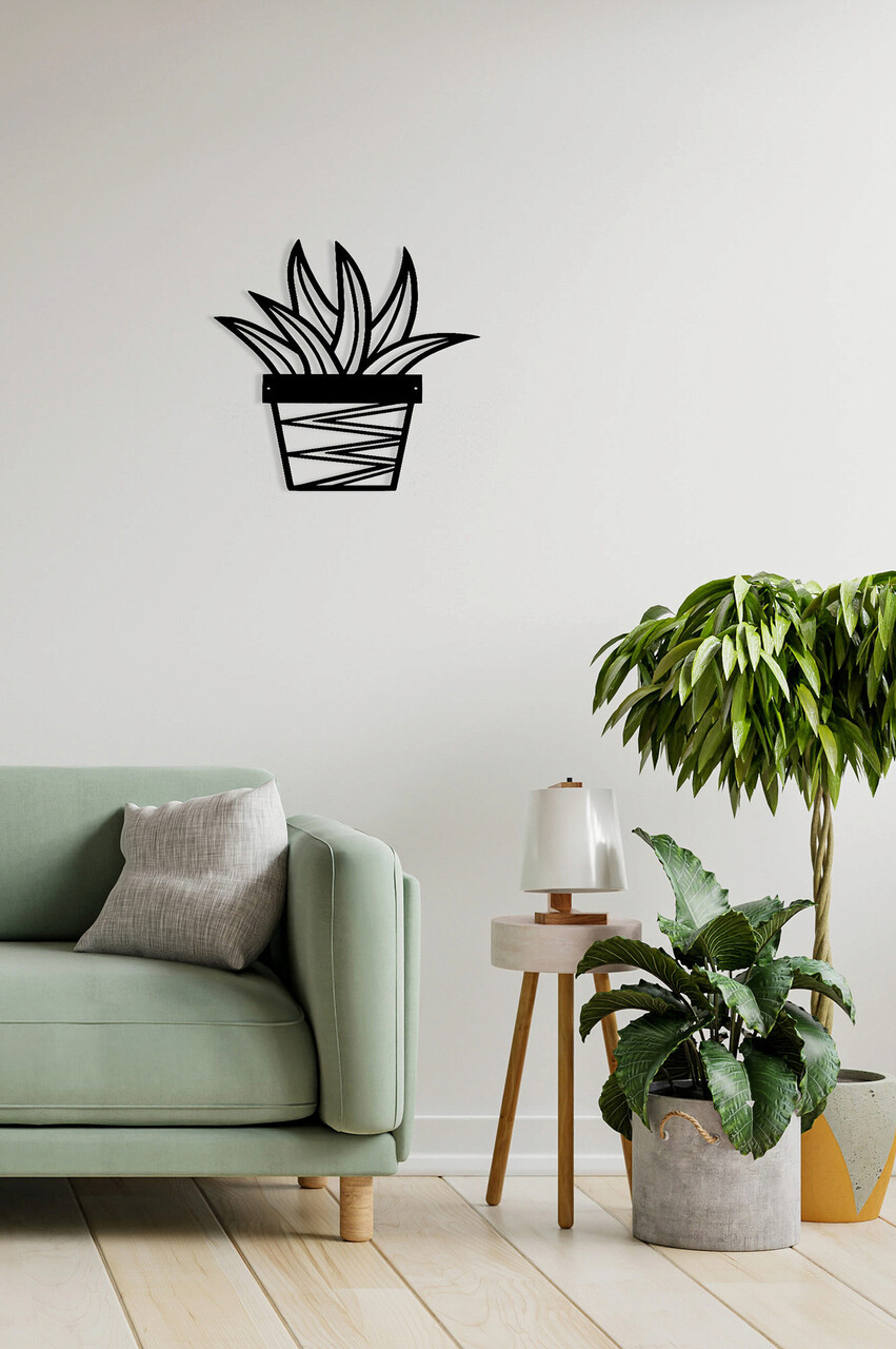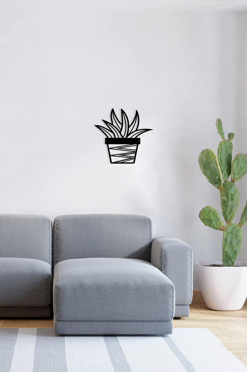 Decoratiune de perete, Cactus 2, Metal, Dimensiune: 20 x 25 cm, Negru