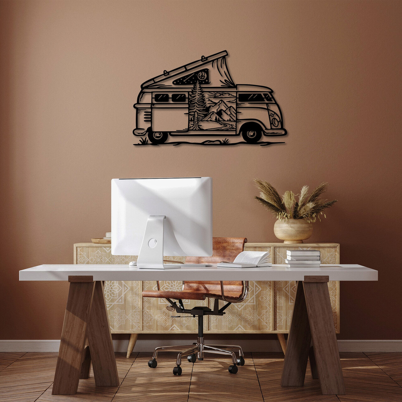 Decoratiune de perete, Caravan, Metal, 90 x 55 cm, Negru