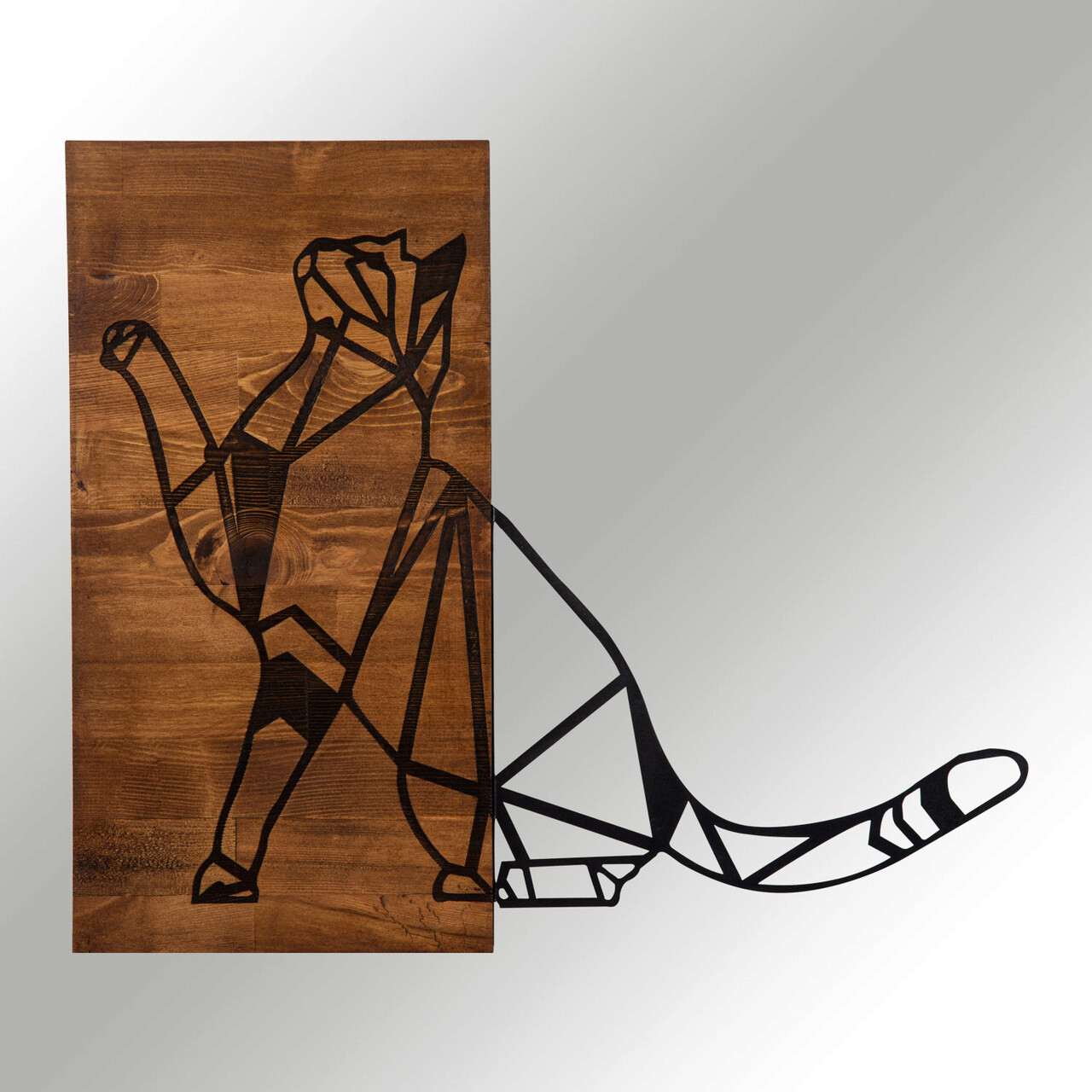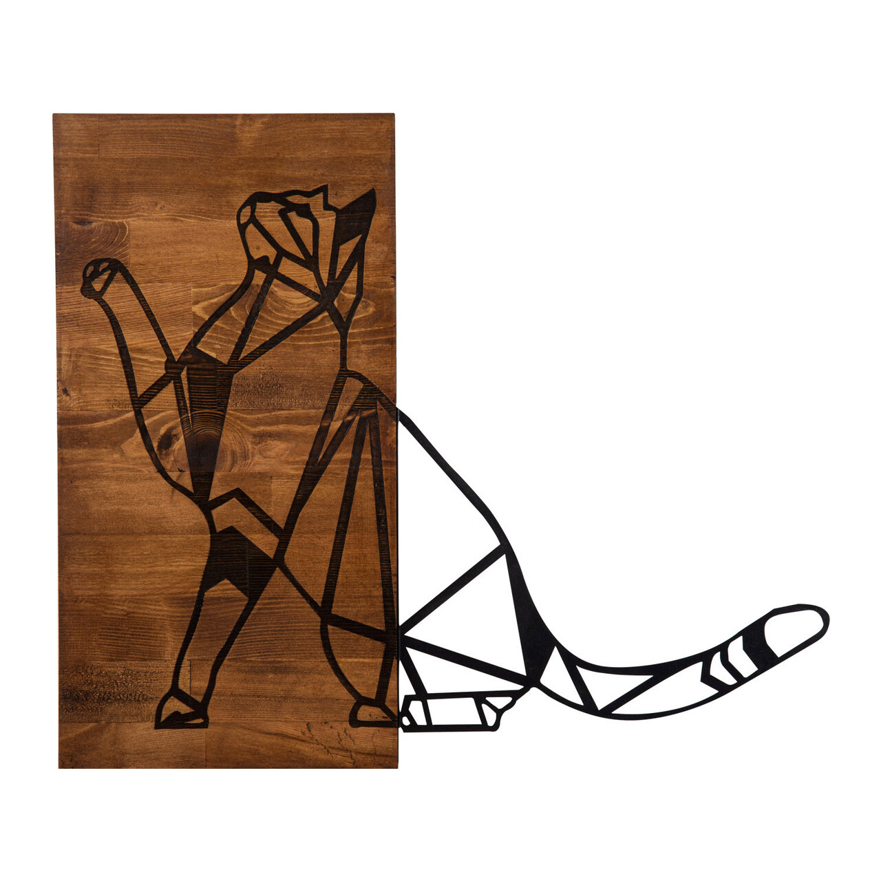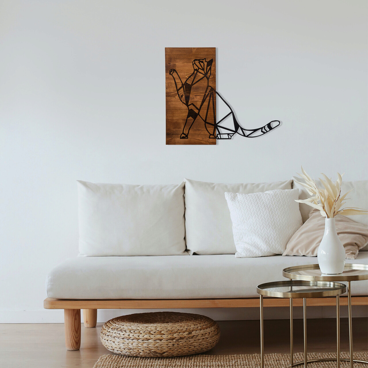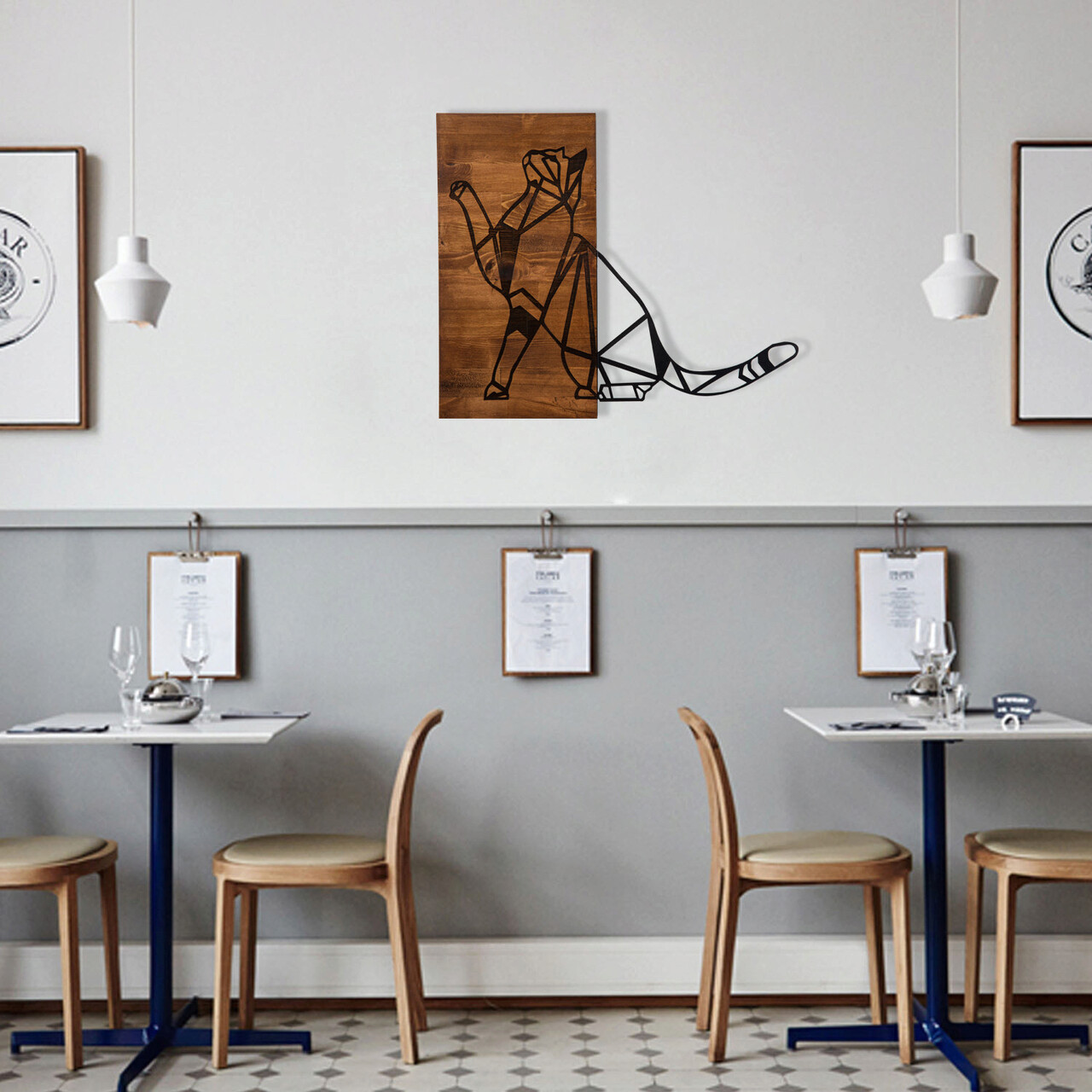 Decoratiune de perete, Cat Metal Decor, lemn/metal, 65 x 58 cm, negru/maro