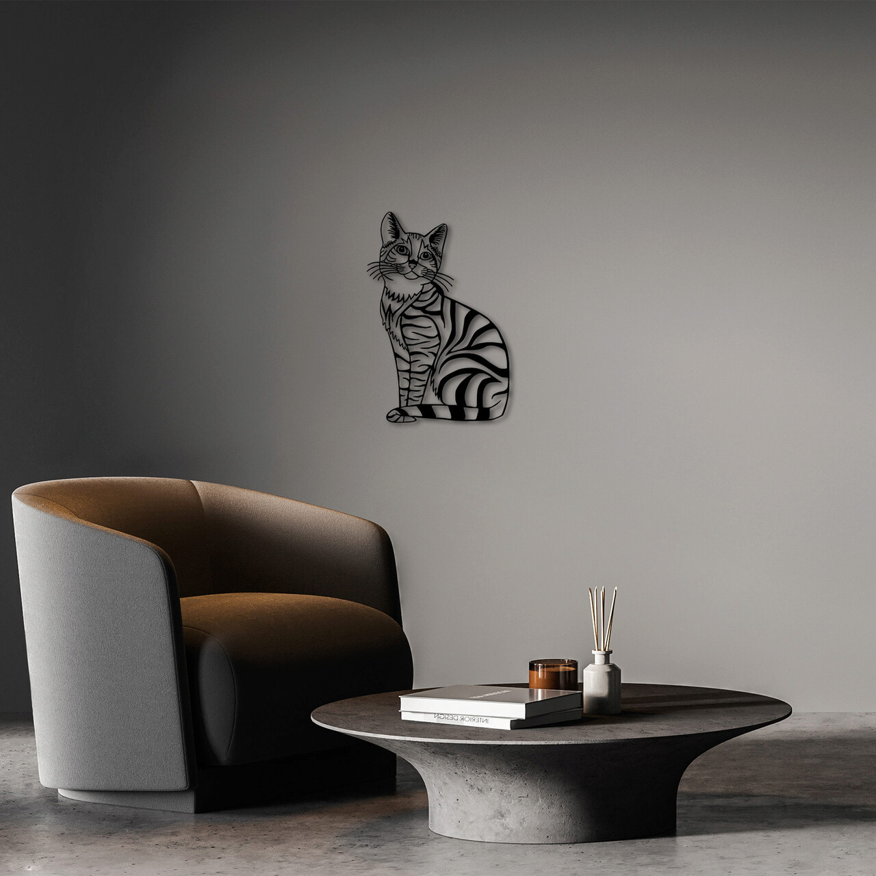 Decoratiune de perete, Cat, Metal, Dimensiune: 46 x 68 cm, Negru