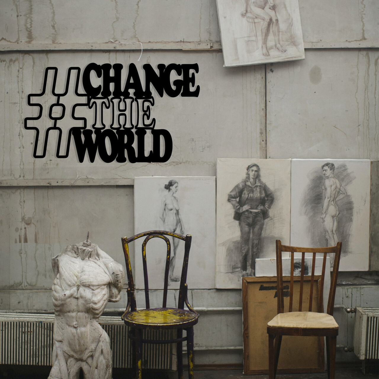 Decoratiune de perete, Change, metal, 70 x 40 cm, negru